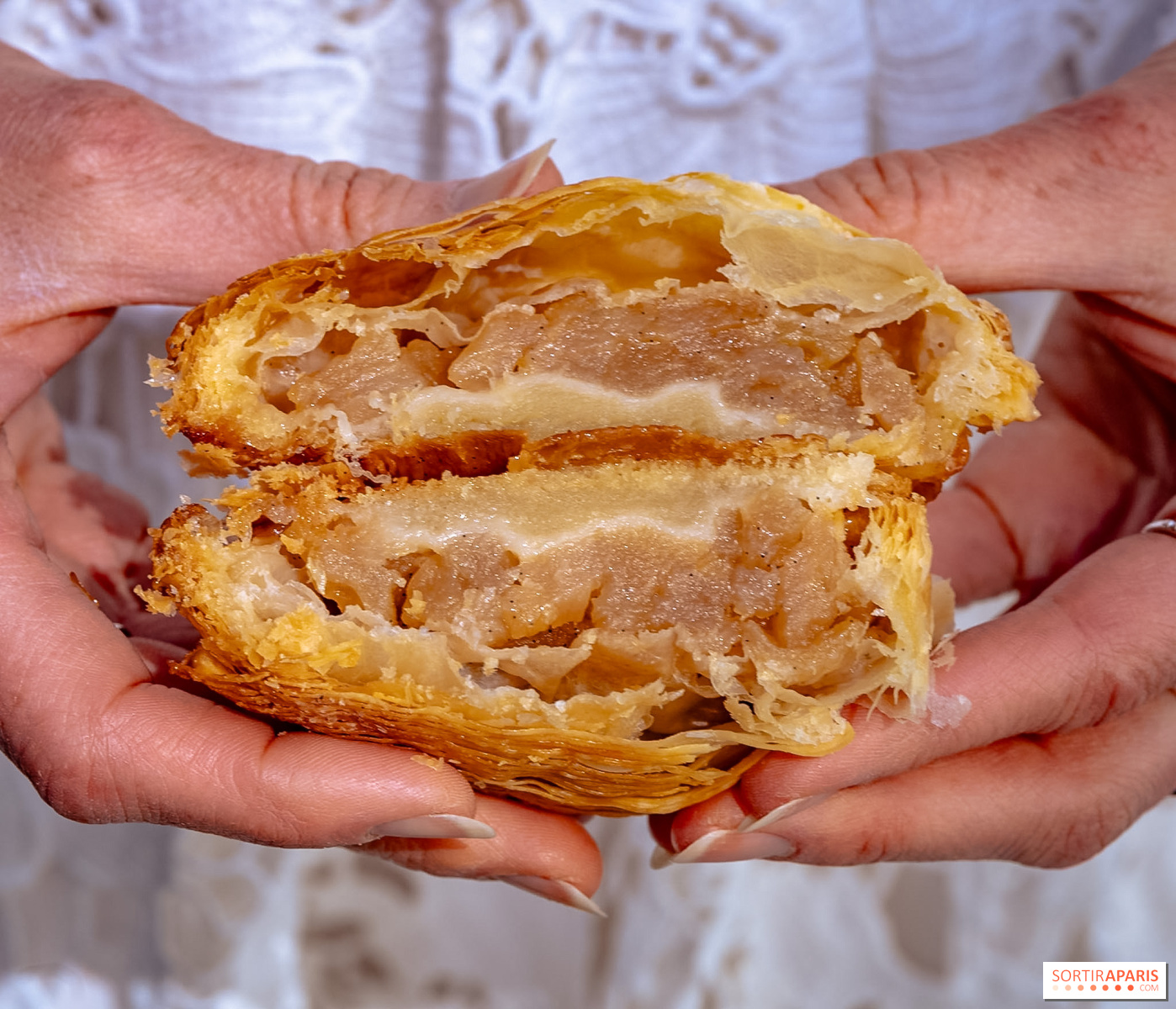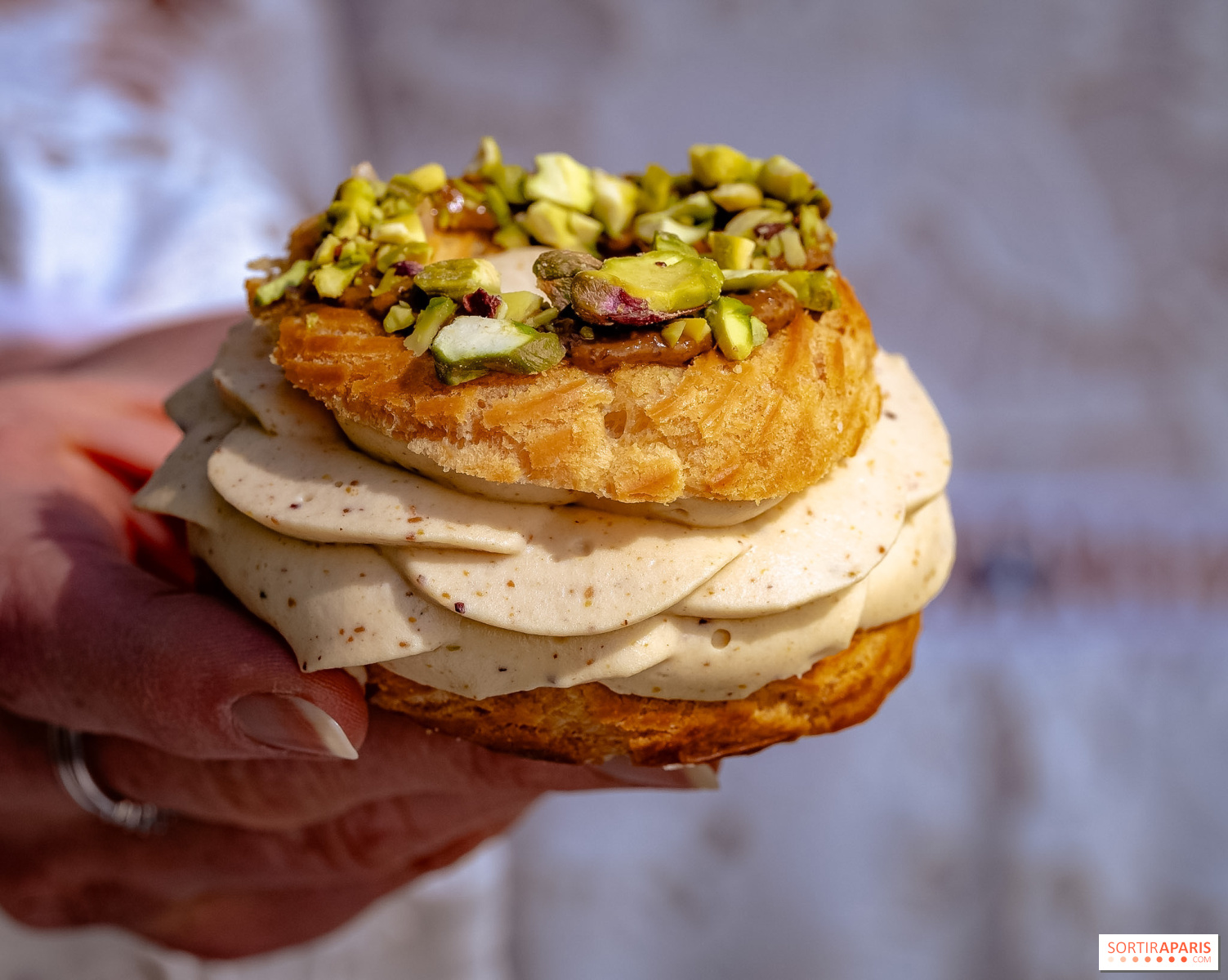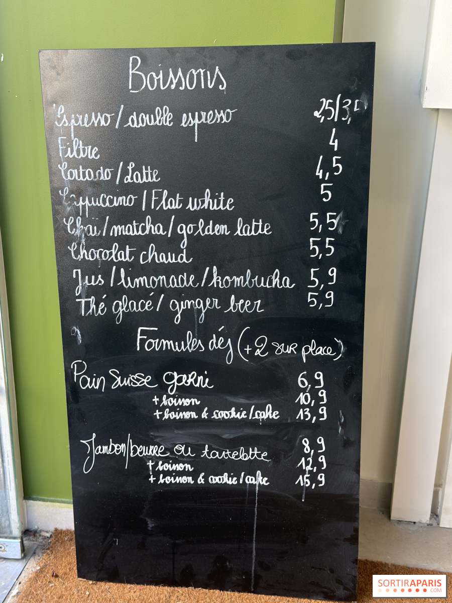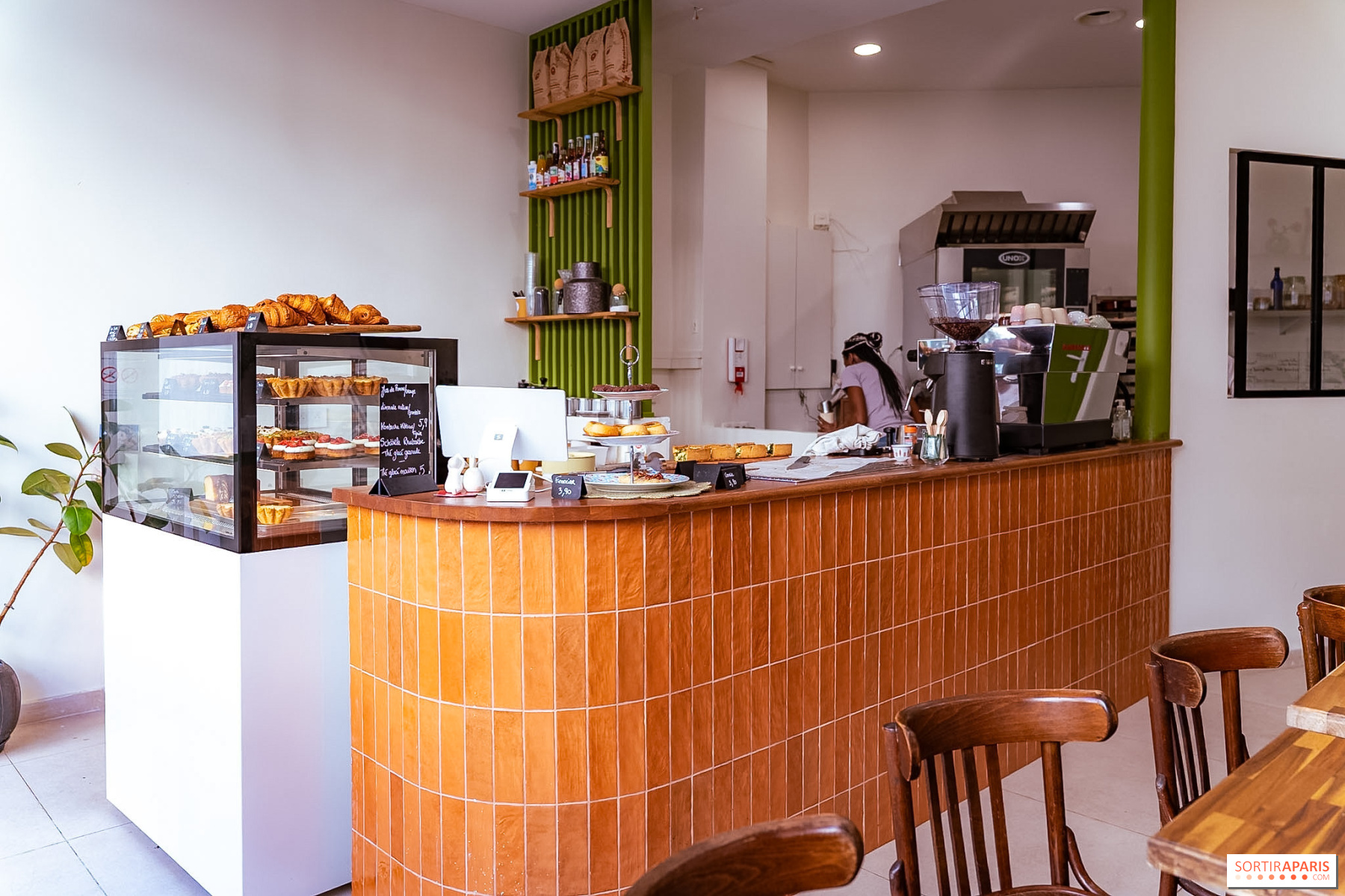 パリ-ブレストもまた、Paris-Brestの名にふさわしく丁寧に仕上げられており、プラリネ入りのムースリーヌクリームがたっぷりでありながら決して重くありません。すべて店内で手作りされており、viennoiseries(ヴィエノワズリー)とchausson aux pommes(アップルパイ風のパン生地のお菓子)も同様です。これがパリではかなり珍しく、わざわざ取り上げる価値があります。コーヒーはコロンビア産で、baristaとしてレベッカが厳選。彼女の訓練が、ひとつひとつのカップに感じられます。