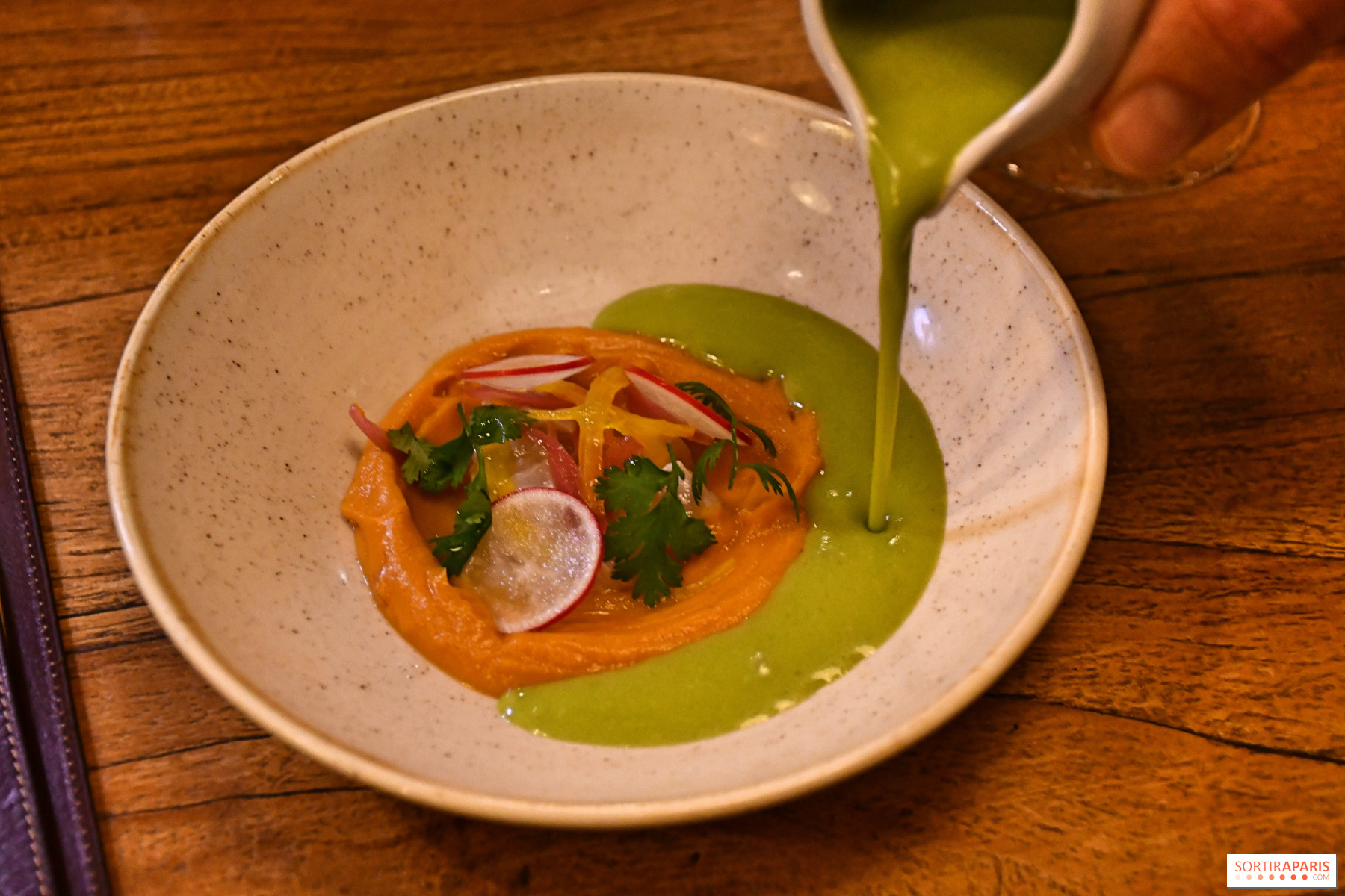 しかし、見逃せないのは、メニューの中で最も人気のある料理のひとつである セビーチェだ。有名なピリ辛マリネ、レチェ・デ・ティグレで味付けされた本日の魚(この場合は真鯛)が、燻製したサツマイモのピュレに乗せられている。全体的にバランスがよく、あまり辛くないので、酸味が五感を目覚めさせ、辛いのが苦手な舌にも適している。