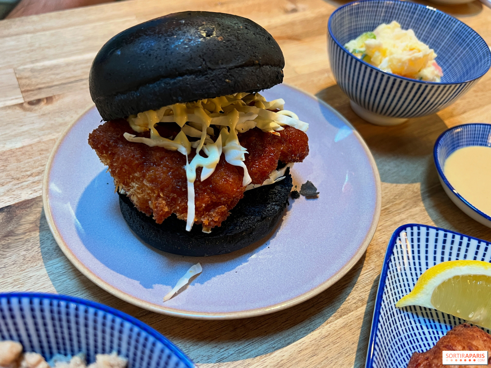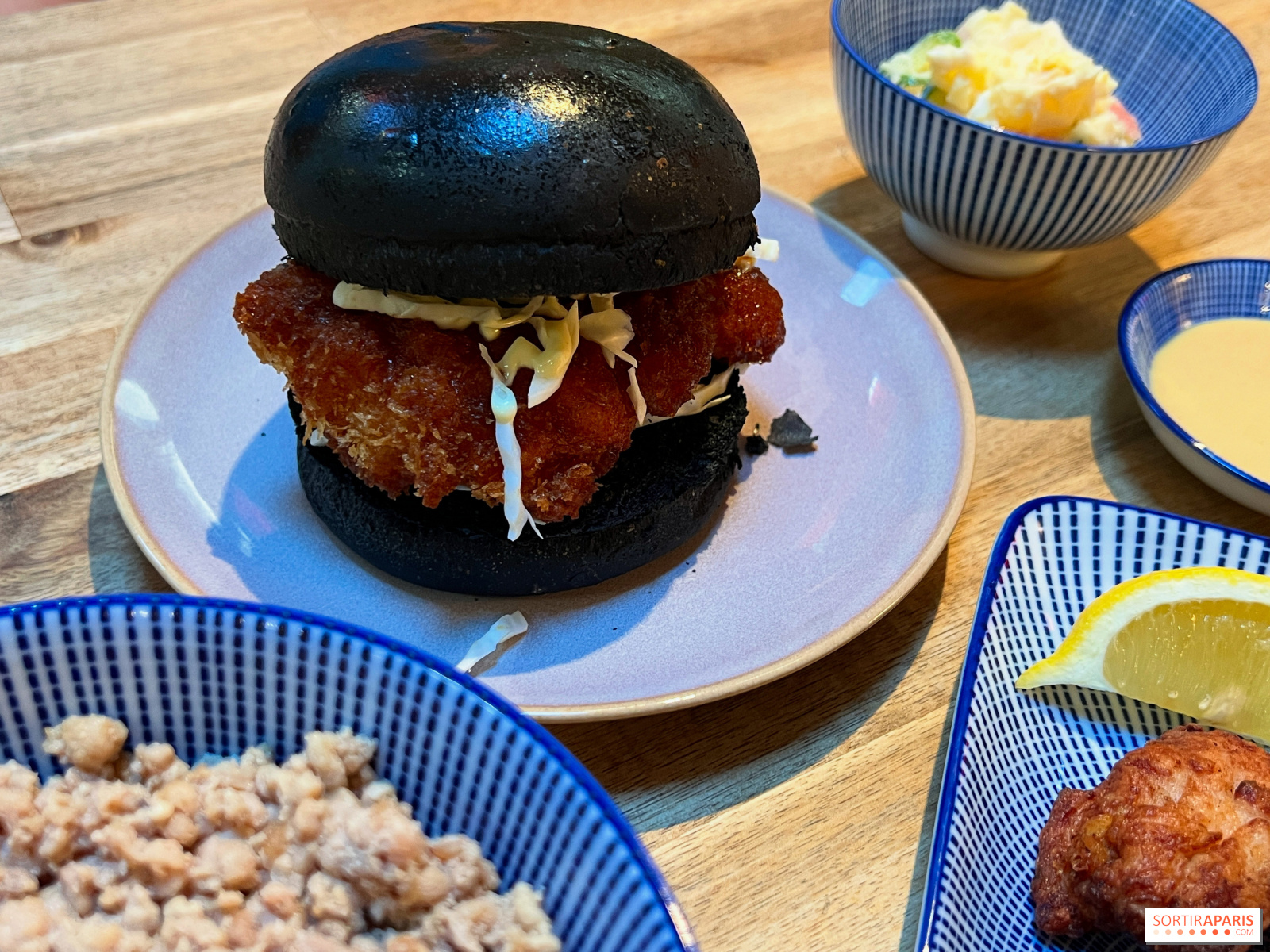 食通なら、からあげ、キャベツの酢漬け、和風マヨネーズを炭火で焼いたバンズで挟んだカツバーガー(13ユーロ)や、スクランブルエッグ、インゲン、甘めの自家製醤油でソテーした鶏もも肉のみじん切りがたっぷりのった炊き込みご飯の 漬け丼 (15ユーロ)もおすすめだ。