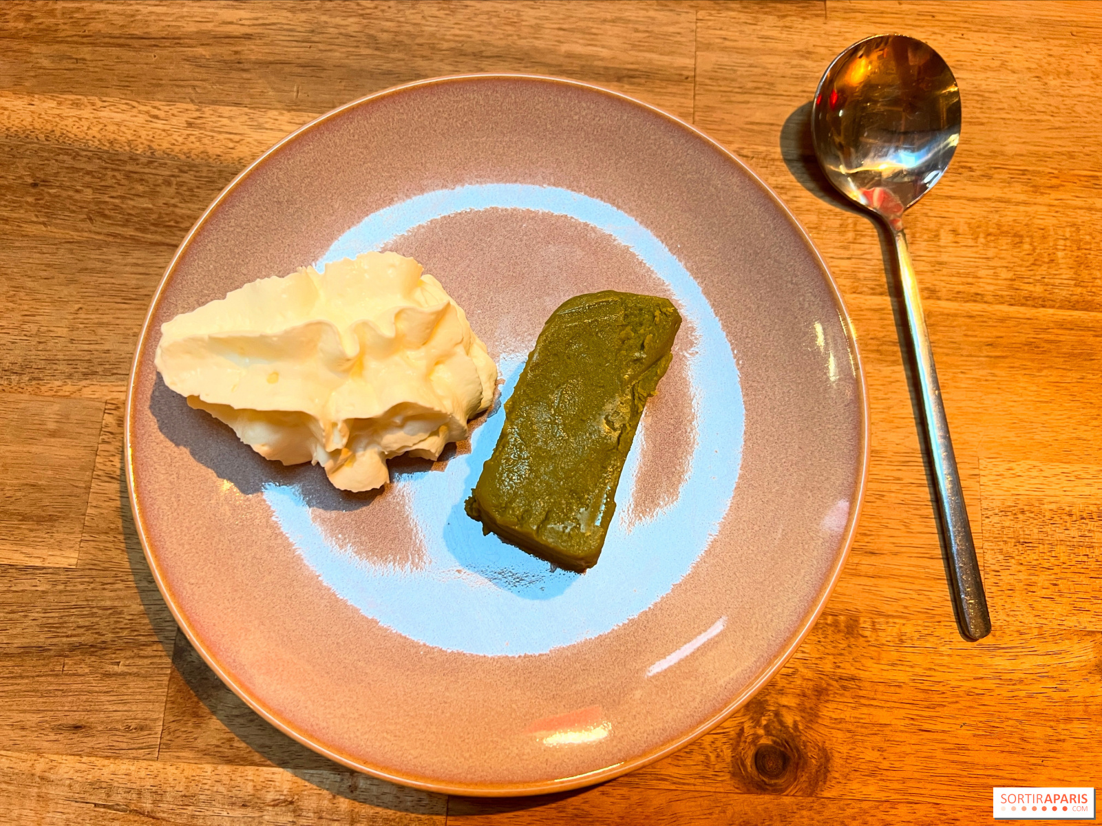 抹茶のフォンダン(7ユーロ)はグルテンフリーだが、驚くような食感で美味しい。