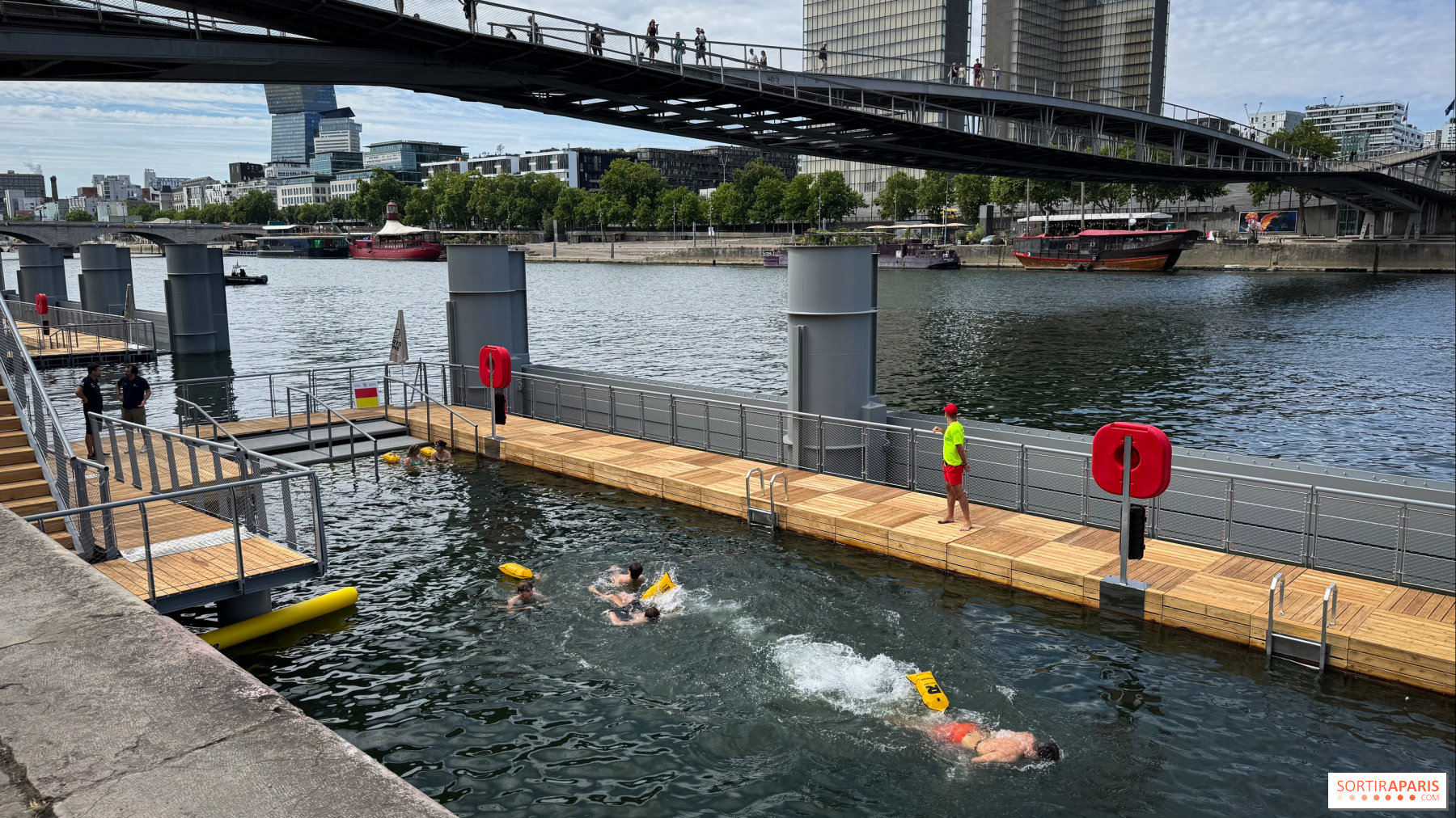 센 강의 보트 항해를 방해하지 않는 두 개의 무료 보호 수영 구역이 계획되어 있습니다. 수영장 중 하나는 길이 35미터, 너비 12.5미터이고, 두 번째 더 큰 수영장은 길이 67미터, 너비 11미터입니다. 부둣가에는 장애인 전용 일광욕실, 탈의실, 샤워실, 화장실은 물론 응급처치 구역도 마련되어 있습니다. 300명의 목욕객을 포함해 총 700명을 동시에 수용할 수 있는 규모입니다. 이 새로운 수영장은 2025년 7월 5일부터 8월 31일까지 운영됩니다.