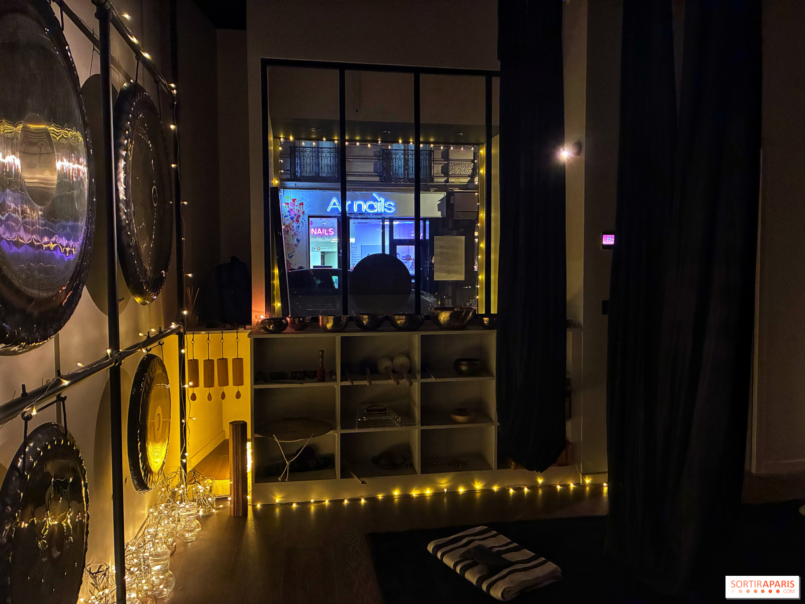 개인 물품을 지하에 보관한 후, 이 아늑한 공간에 들어서면 여덟 개의 공간 중 하나를 선택하게 됩니다. 소음에 민감하시면, 징 소리와 바로 마주치지 않도록 두 번째 줄을 선택하는 게 더 편하실 겁니다. 소규모 그룹으로, 한 시간 동안 완전히 몸을 맡기며 새로운 이완의 시간을 보내는데요, 떠다니는 듯한 몸의 감각이 더 깊은 휴식을 선사합니다.