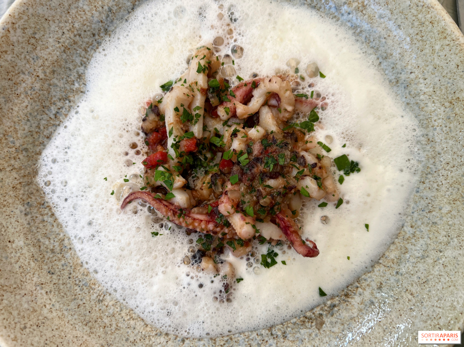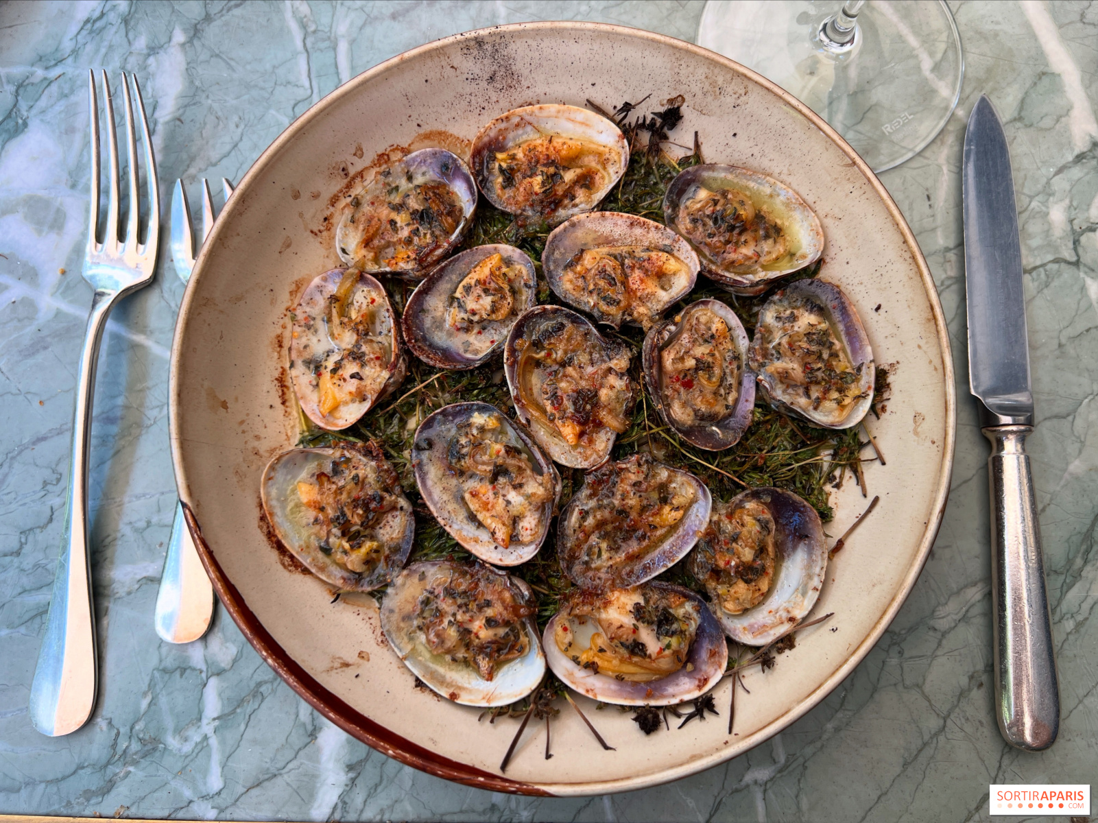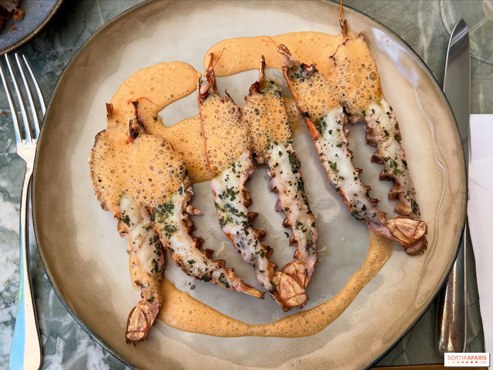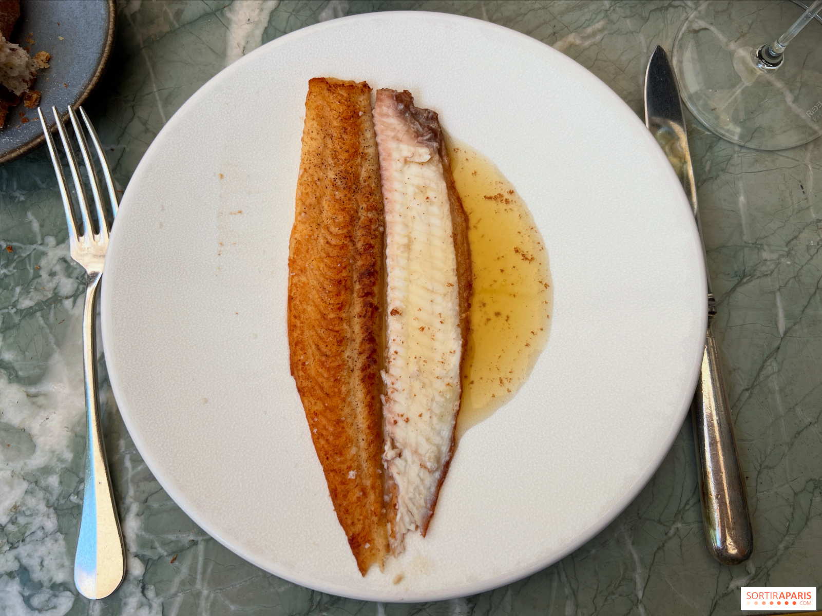 특별히 선호하는 순서는 없지만 모든 음식이 섬세하고 풍미가 좋았기 때문에 레몬 타임을 곁들인 조개 그라탕 (€26), 파슬리와 초리소를 곁들인 오징어 (€32), 무스 앞에서 완벽하게 익힌 솔 뫼니에르 (€75), 타라곤을 곁들인 구운 랑구스틴 (€85)을 언급하고 싶네요. 휘핑크림 한 덩어리가 없는 럼 바바 (25유로)는 조금 덜 유혹적이었어요.