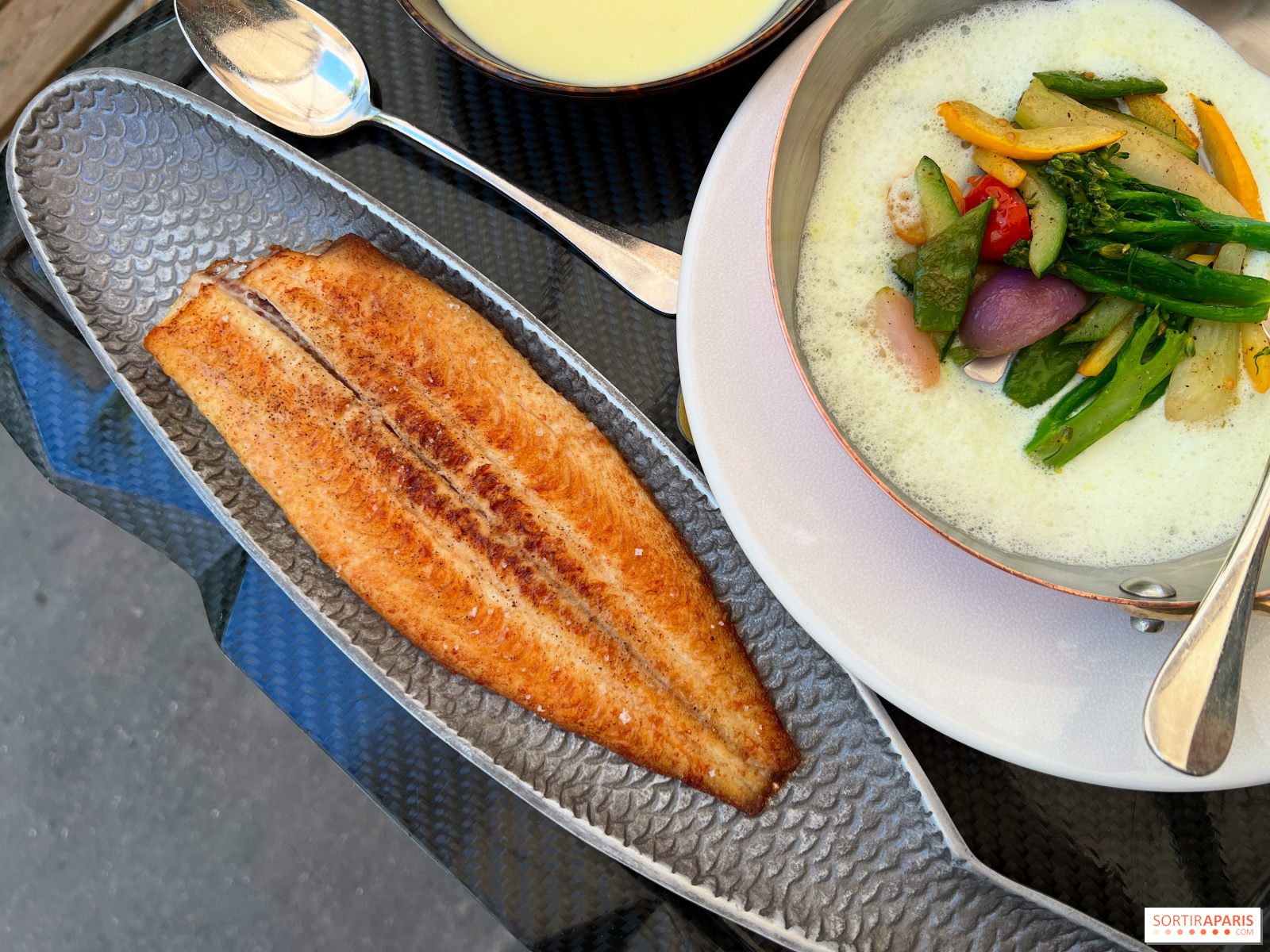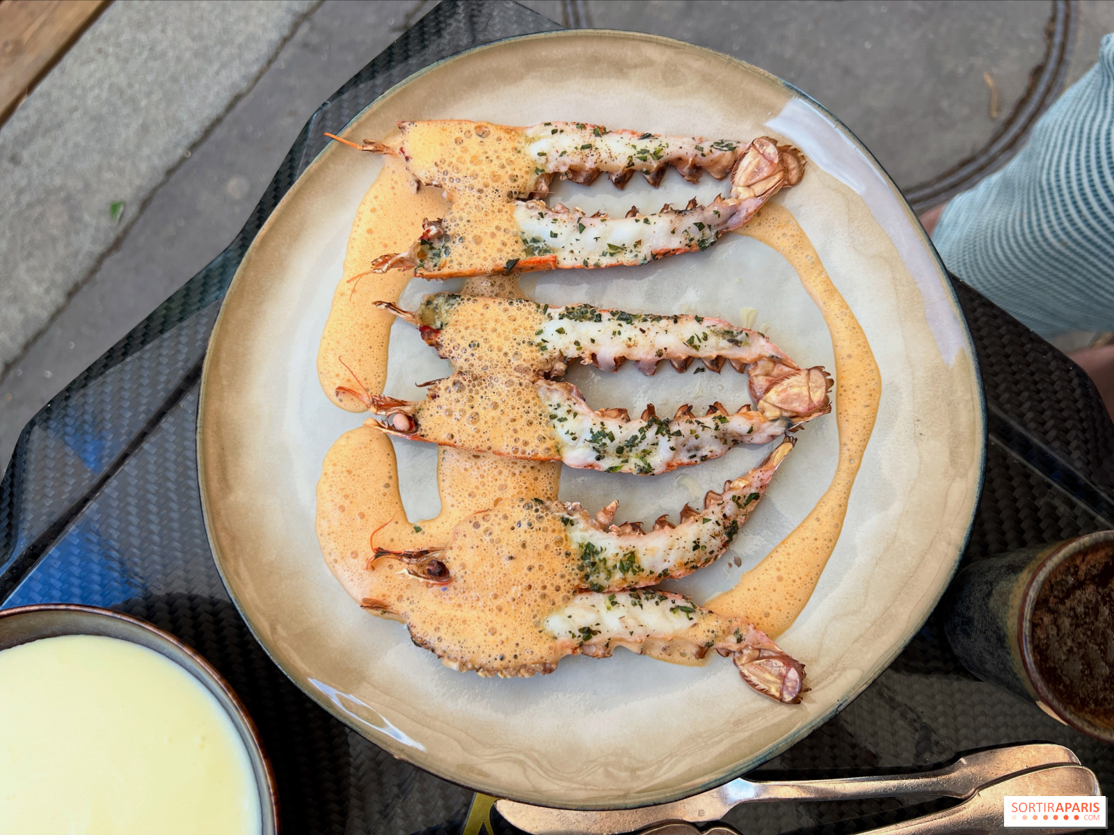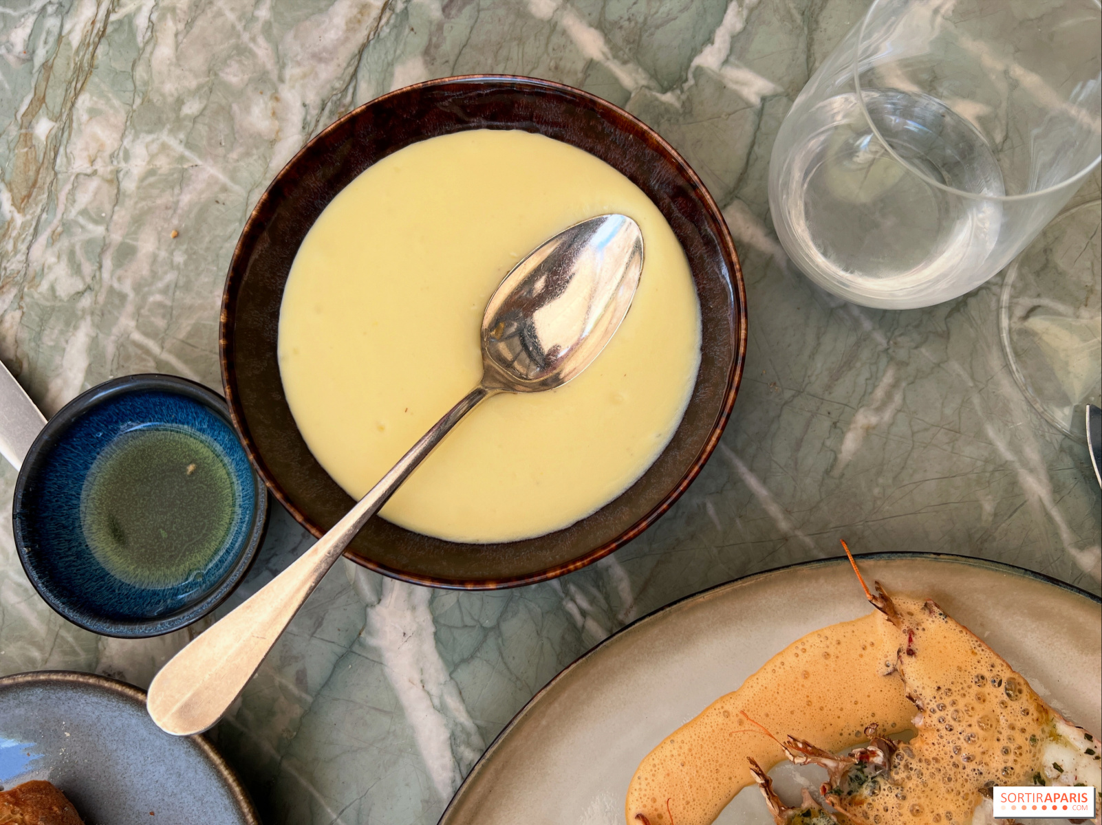 특별히 선호하는 순서는 없지만 모든 음식이 섬세하고 풍미가 좋았기 때문에 레몬 타임을 곁들인 조개 그라탕 (€26), 파슬리와 초리소를 곁들인 오징어 (€32), 무스 앞에서 완벽하게 익힌 솔 뫼니에르 (€75), 타라곤을 곁들인 구운 랑구스틴 (€85)을 언급하고 싶네요. 휘핑크림 한 덩어리가 없는 럼 바바 (25유로)는 조금 덜 유혹적이었어요.