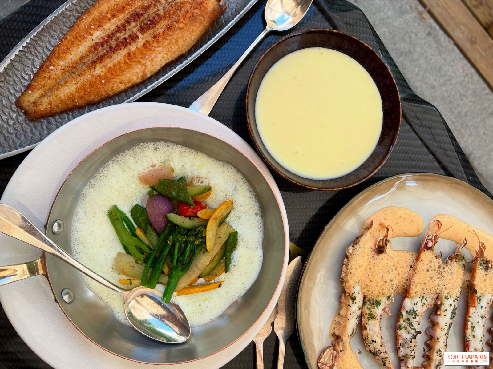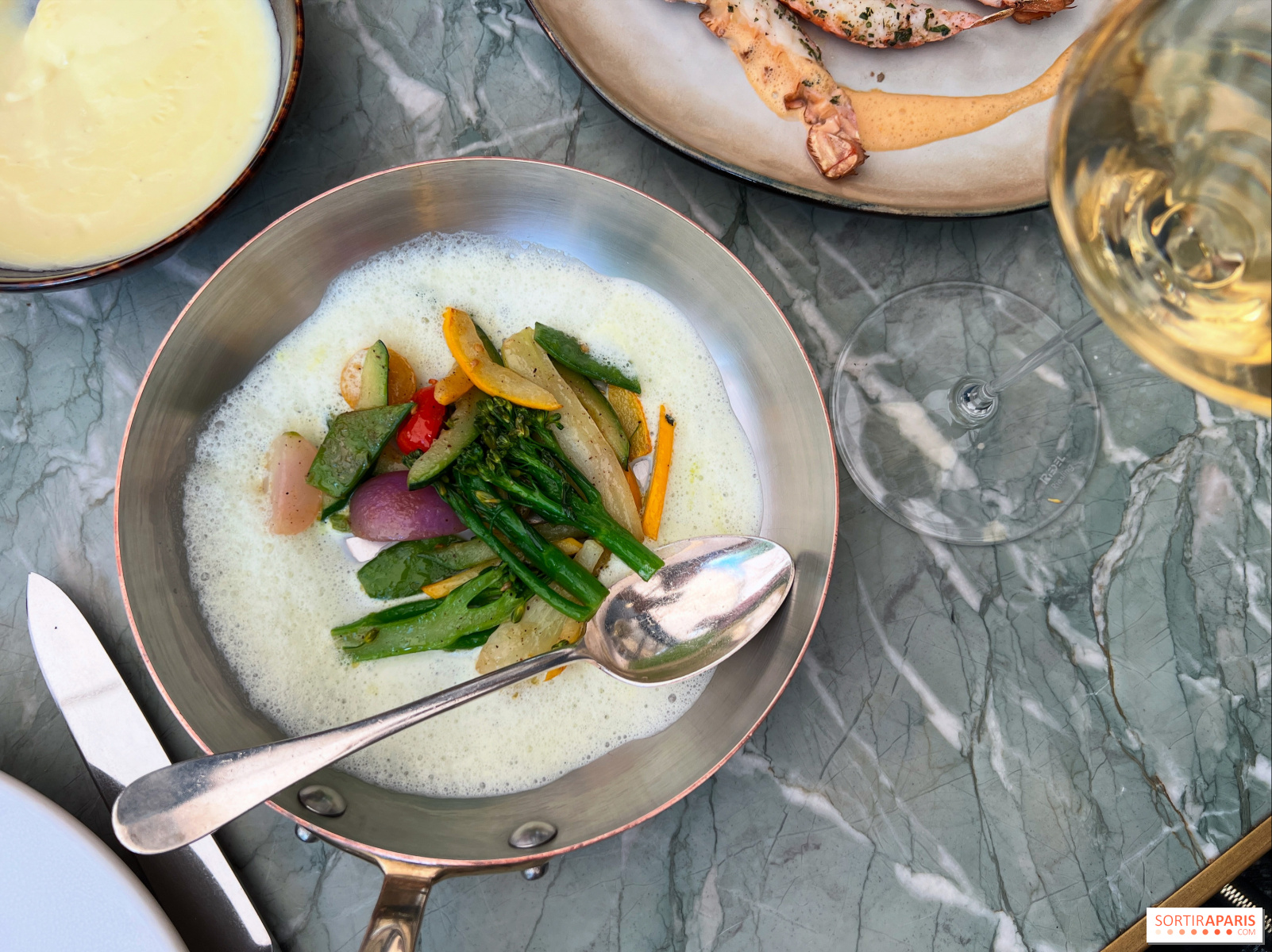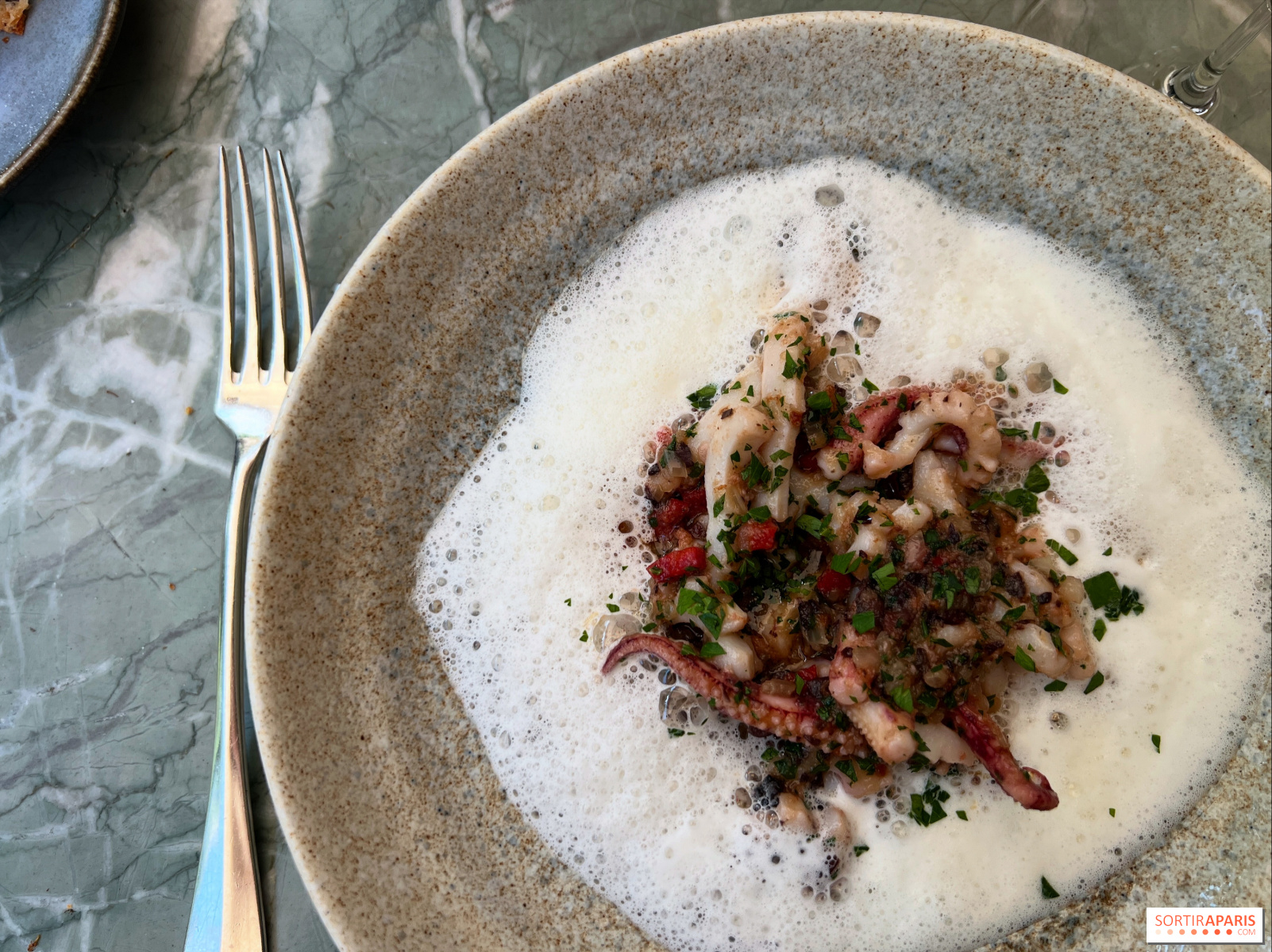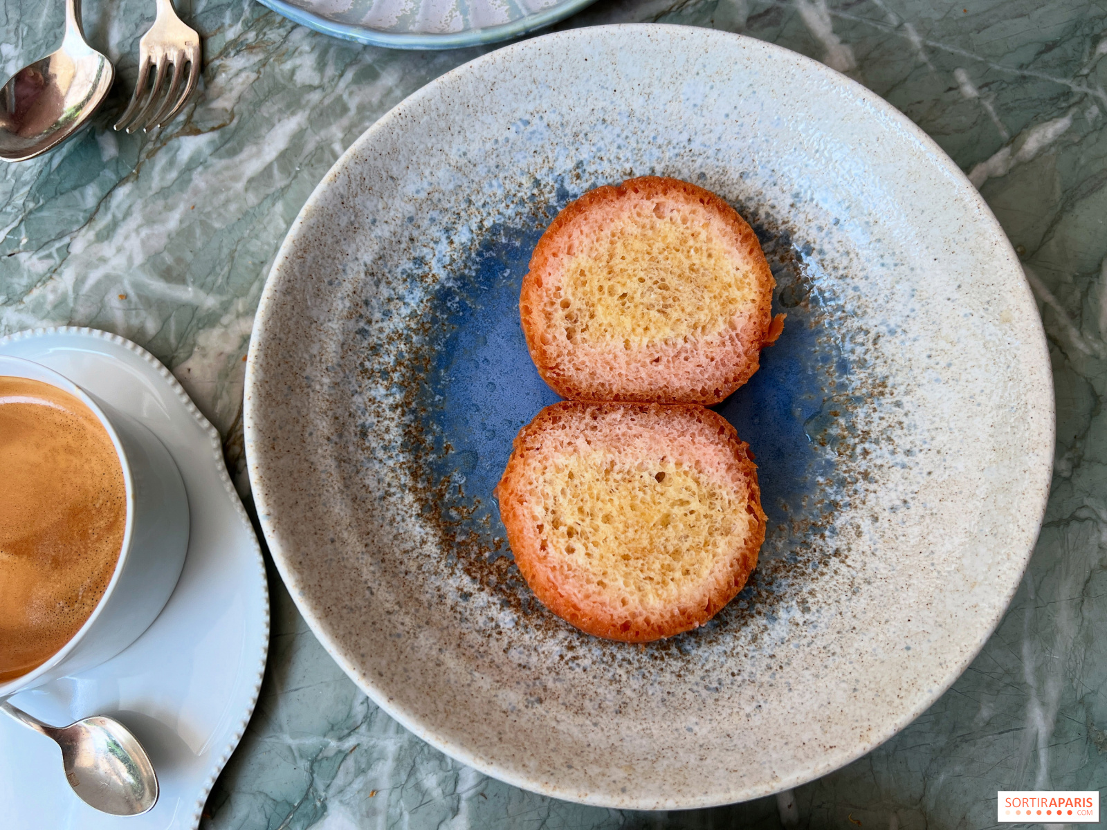 특별히 선호하는 순서는 없지만 모든 음식이 섬세하고 풍미가 좋았기 때문에 레몬 타임을 곁들인 조개 그라탕 (€26), 파슬리와 초리소를 곁들인 오징어 (€32), 무스 앞에서 완벽하게 익힌 솔 뫼니에르 (€75), 타라곤을 곁들인 구운 랑구스틴 (€85)을 언급하고 싶네요. 휘핑크림 한 덩어리가 없는 럼 바바 (25유로)는 조금 덜 유혹적이었어요.