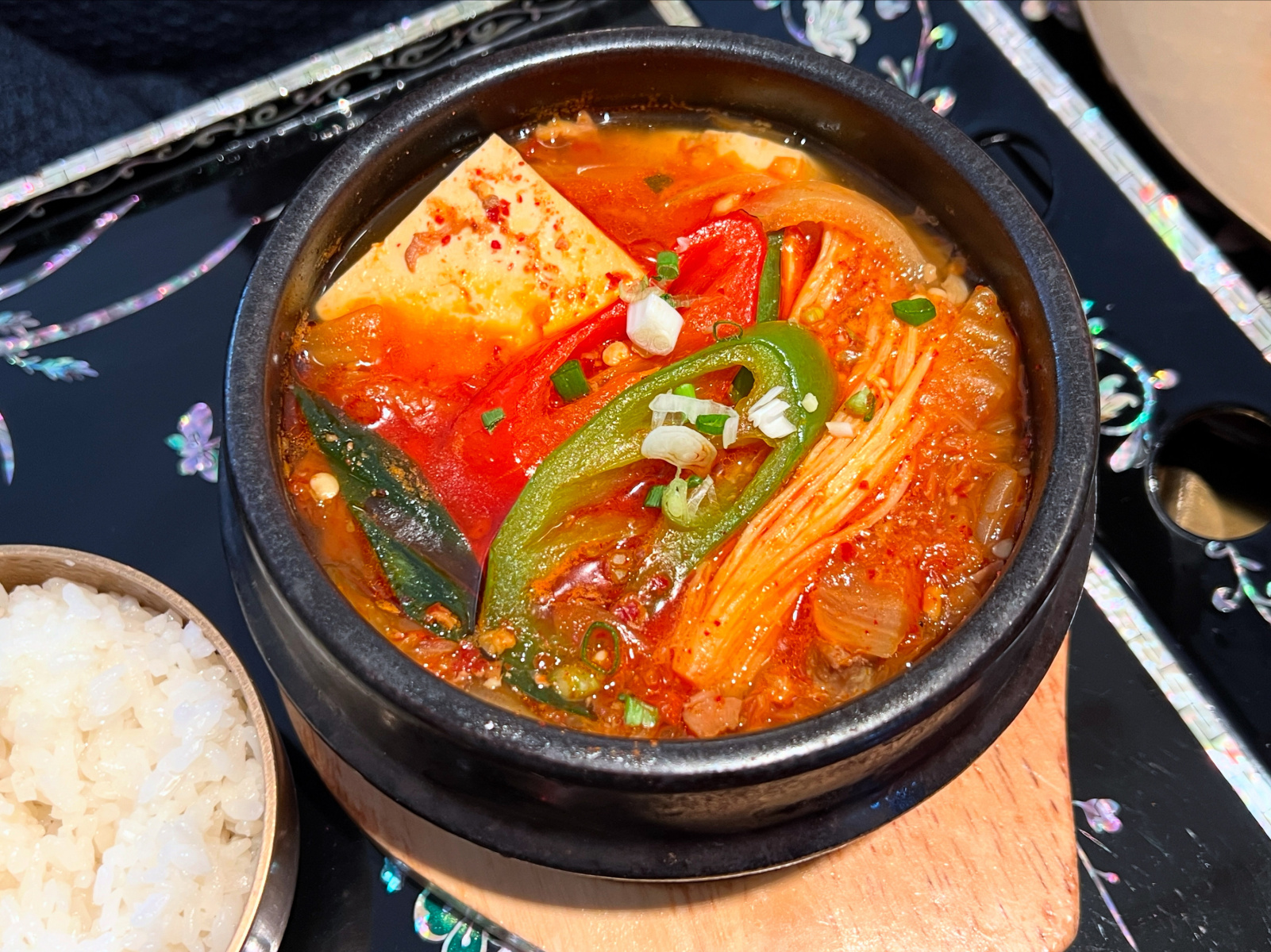 진한 검은 짜장 소스를 바른 면에 야채와 소고기를 아낌없이 올린 짜장면(19유로)은 꼭 먹어봐야 할 메뉴이며, 김치와 두부, 매콤한 돼지찌개 (22유로)도 더 매웠으면 좋았겠지만 파리지앵의 입맛에 맞춘 음식인 것은 의심할 여지가 없죠.