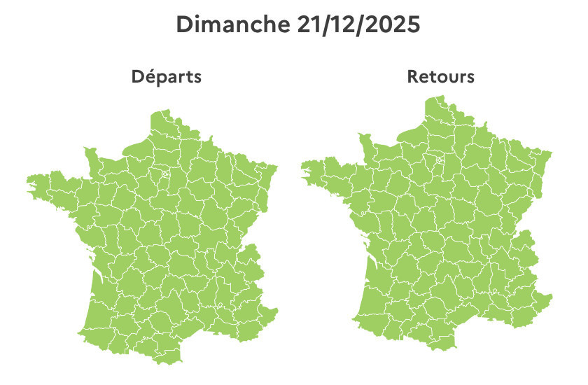 여유가 있고 일정에 여유가 있다면, 2025년 12월 21일 일요일이 출발과 도착 모두 원활한 하루로 손꼽힙니다. 이날은 파리와 일드프랑스를 떠나는 최적의 시기로, 전국적으로 교통 흐름이 매우 원활하게 예상됩니다.
