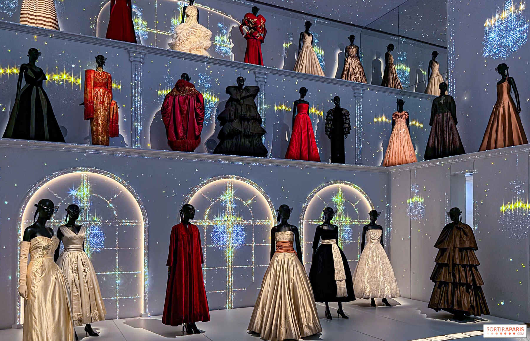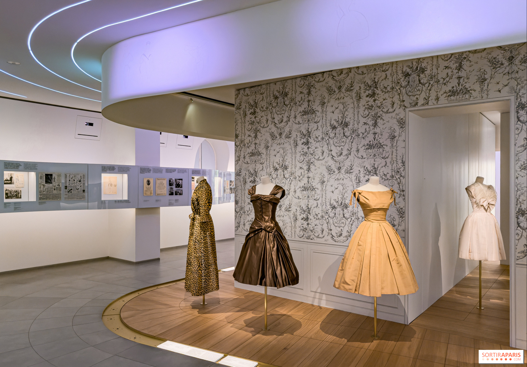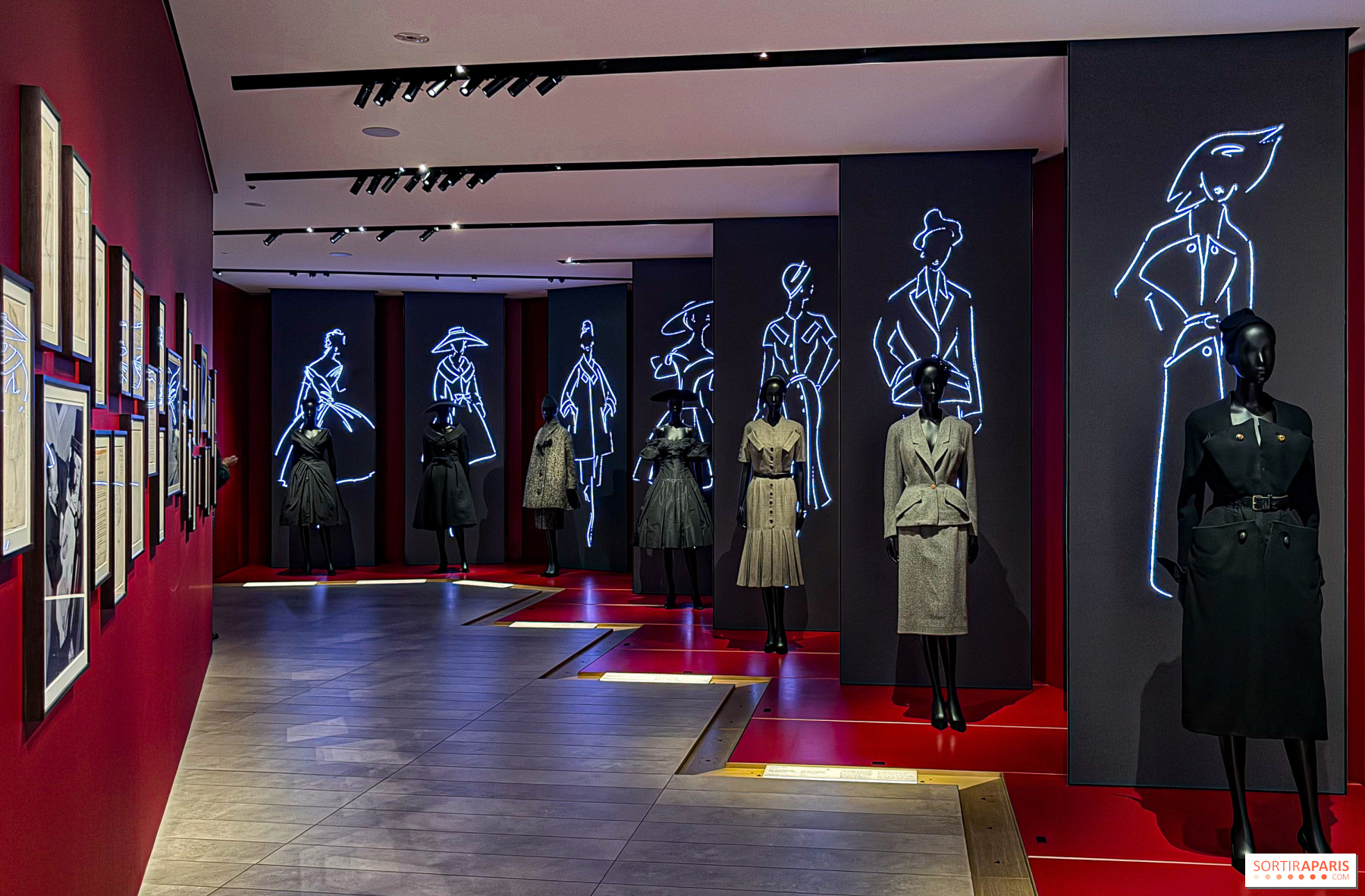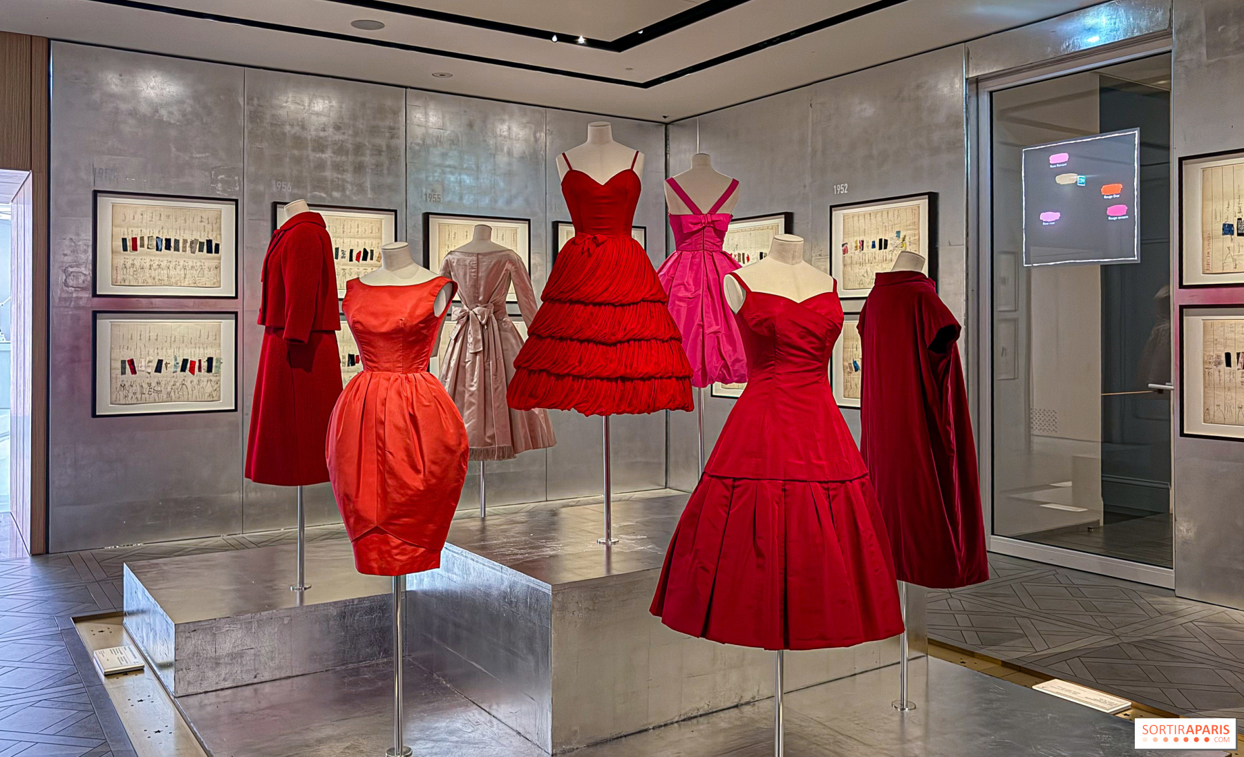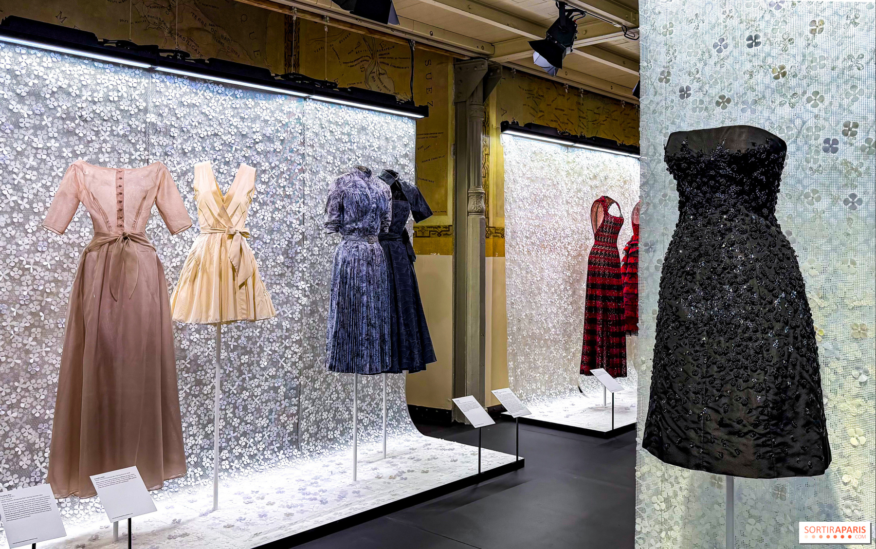 2025년 11월 20일부터 2026년 5월 3일까지, 디올 갤러리가 처음으로 빛을 발합니다. 100여 점이 넘는 디올 작품들이 600여 점의 컬렉션 중 공개되는데, 이 컬렉션은 오랜 시간 동안 알레이아가 모아온 것이며 그의 재단이 보존하고 있습니다. 이 보물들이 보여주는 것은, 알레이아가 특별히 바라본 뉴룩의 거장 디올과 그의 후계자들—이브 생로랑, 존 갈리아노에 이르기까지의 이야기를 담고 있습니다. 특히 눈길을 끄는 것은, 1956년 6월에 21살이던 알레이아가 디올에서 다섯 일 동안 인턴을 했던 경험으로, 이 일화는 그의 인사 명부에 고스란히 기록되어 있으며, 현재는 갤러리의 진열장 안에 전시되어 있습니다.