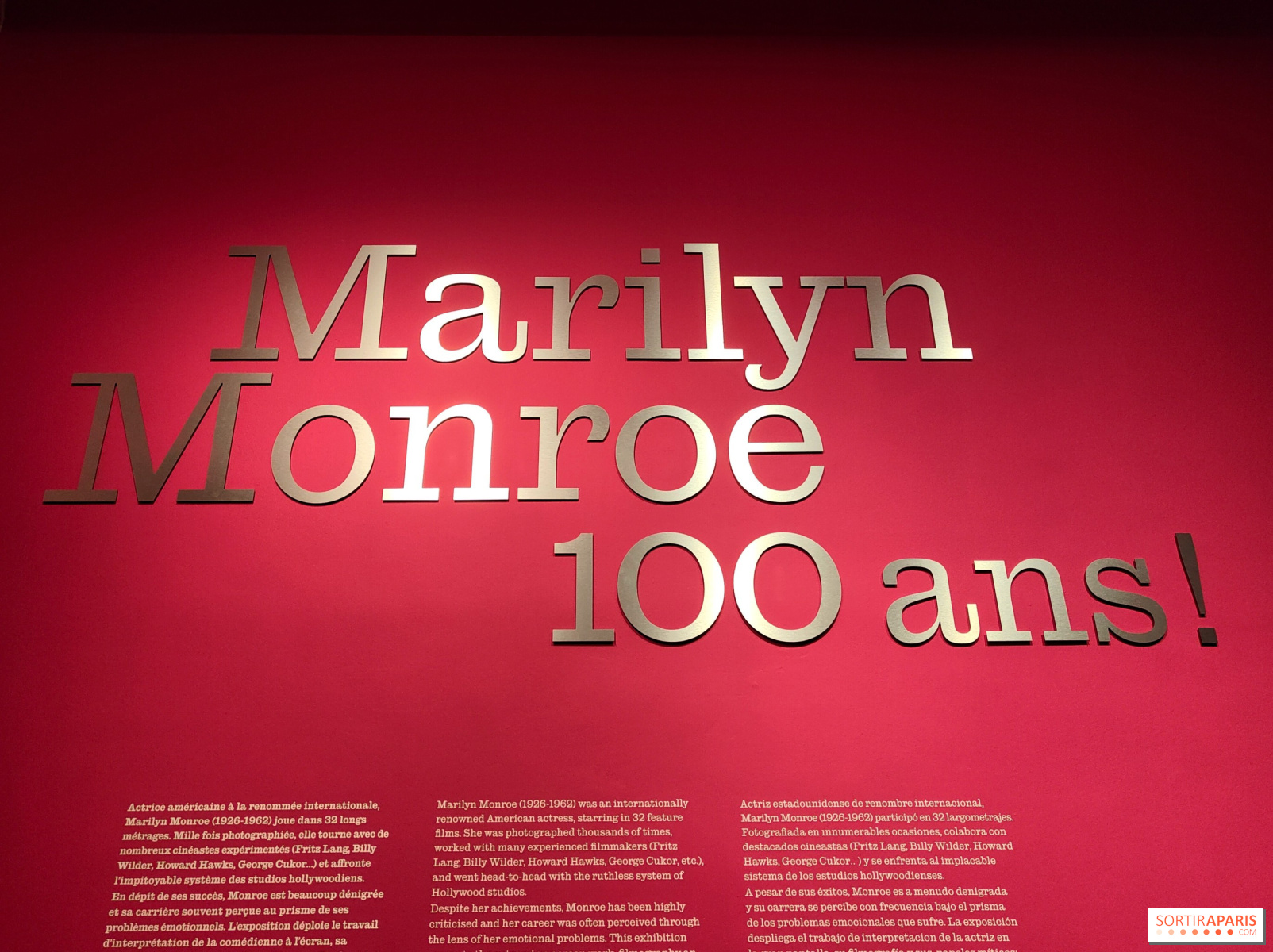 전시 코스에는 영화의 멋진 장면들이 꽤 담겨 있지만, 배우의 개인 소장품이 더 많이 공개되었으면 하는 아쉬움이 남는다. 전시된 많은 물건들은 당대의 유행과 먼로의 스타일을 보여주려는 의도가 있지만, 그녀의 것이 실제로는 아니다. 배우 뒤에 숨어 있던 여성에 대해서는 아직 잘 알려지지 않았고, 사진과 사례들은 해설되며 해체되지만, 진짜 마릴린은 그리 돋보이지 않는다. 시네마테크가 배우의 작업을 분명히 조명하고 있지만, 대중 매체의 이야기에서 벗어나 이 여성의 예측 불허한 면모를 더 진정성 있게 드러내는 데는 다소 미흡하다.