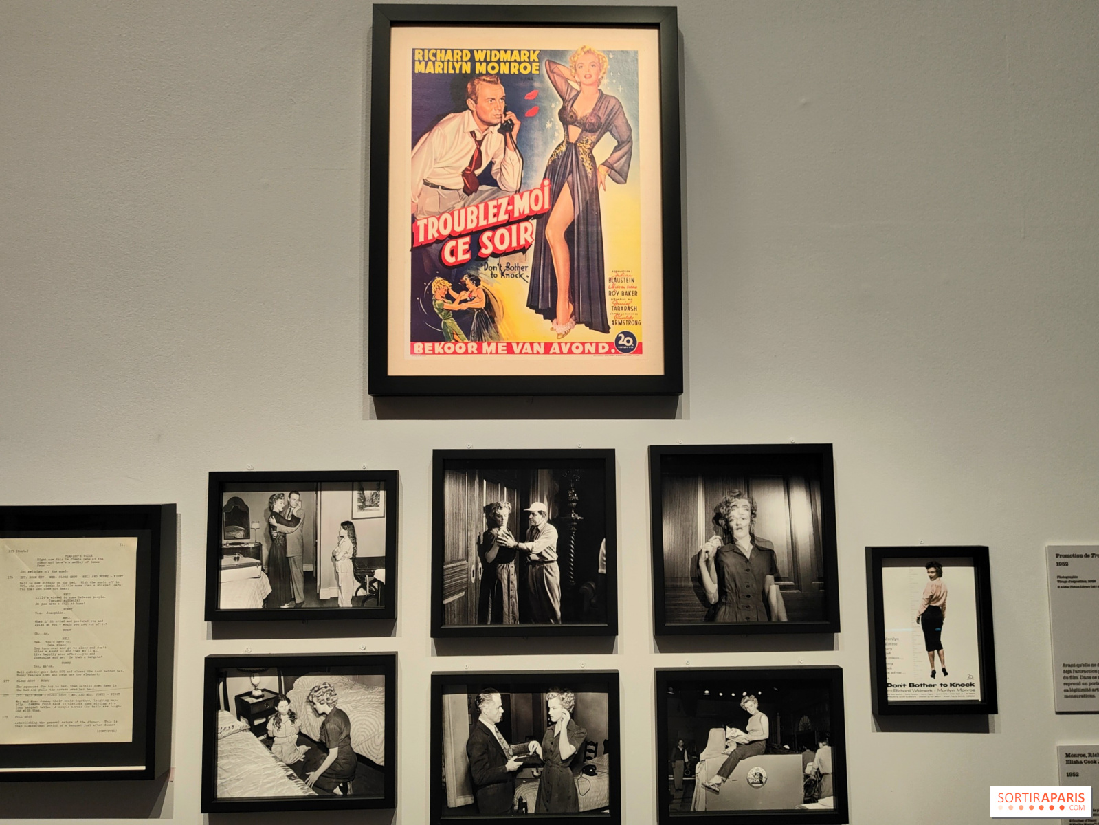 처음 시작부터 예기치 않게 이른 종말에 이르기까지, 무엇보다 배우로서의 재능을 인정받기 위해 공부하고 열심히 몸담아 온 그녀를 다시 만난다. 이번 전시는 영화의 일부 장면과 사진, 포스터를 통해 마릴린 먼로가 예술에 쏟아부은 헌신을 되새겨 준다.