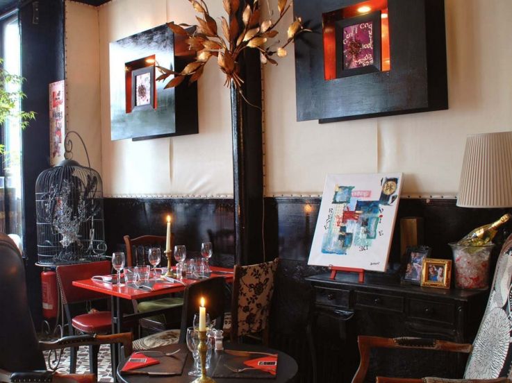 Rouge, noir, blanc, tables chinées et fauteuils baroques se sont réunis pour célébrer l'audace et la créativité. A l'Oga, l'ennui n'a pas droit de cité car sa Majesté Originalité et Monseigneur Curiosité règnent en salle comme dans l'assiette.