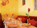 Une très belle salle au mobilier d'inspiration indienne classique, aux imposantes chaises de bois sombre et aux nappes de soie blanche pourrait faire oublier qu'on est ici à des milliers de kilomètres de Paris, sur la péninsule indienne.