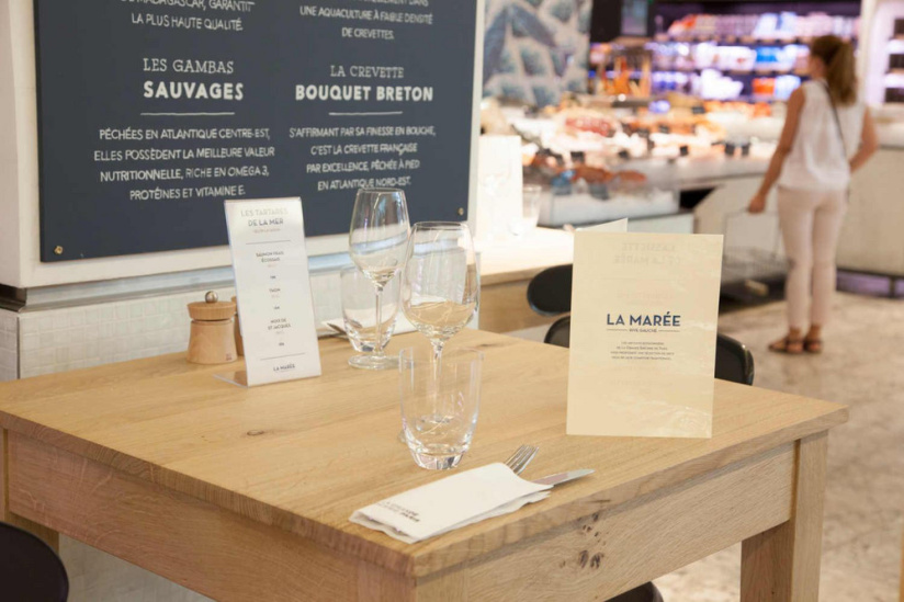Vous êtes en pleine séance shopping et avais envie de faire une petite pause, voire même de vous transporter au bord de la mer... Direction La Marée, un petit coin aux saveurs iodées en pleine Grande Epicerie de Paris. Dépaysement garanti !