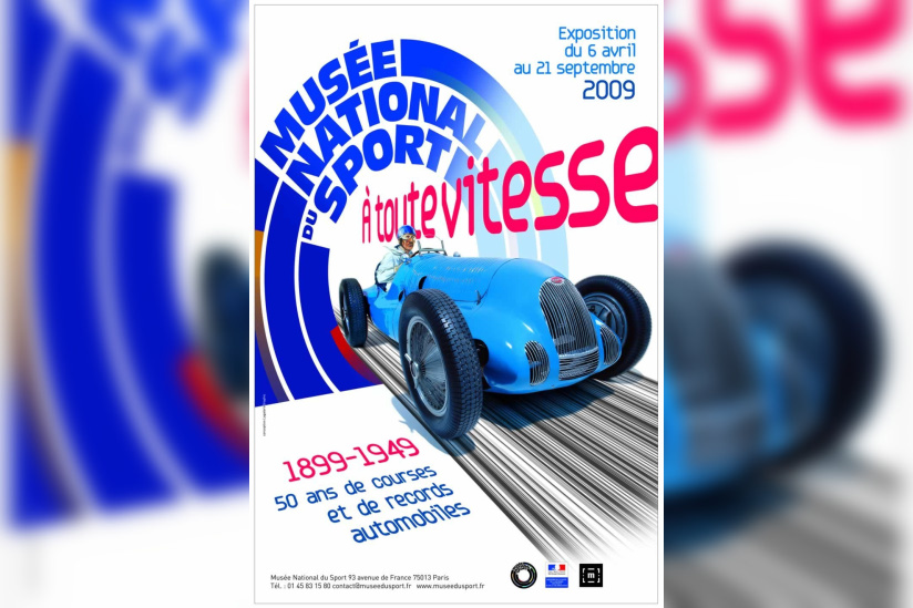 Pour la première fois depuis 40 ans, une exposition est organisée à Paris sur le thème de la course automobile. A cette occasion, le Musée National du Sport présente deux véhicules emblématiques : la « Jamais Contente » de Camille Jenatzy, qui franchit pour la première fois le mur des 100 km/h en 1899, et la Bugatti type 59/50B pilotée par le champion automobile Jean-Pierre Wimille, qui remporta en 1945 la Coupe des Prisonniers, première course organisée après-guerre.