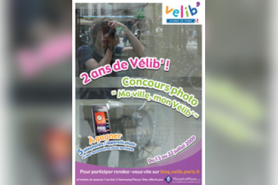 Déjà deux ans que le Vélib' a envahi les rues de la capitale et de ses alentours. Pour fêter cet anniversaire, un concours est destiné aux passionnés du vélo gris. « Ma ville, mon Vélib' », c'est le thème que devront traiter les participants aux moyens de la photographie. Le style est libre, noir et blanc, couleur, recherche artistique, ou simple témoignage proche du journalisme seront autorisés. Unique contrainte, une seule photo par photographe pourra être remise au jury du concours. Celui-ci se réunira le 23 juillet pour déterminer la liste des lauréats du concours. Les 5 premiers remporteront un téléphone/appareil photo Samsung Player One, offert par le partenaire de l'opération : PhoneAndPhone.com. Les 10 suivants gagneront des accessoires pour téléphonie mobile.