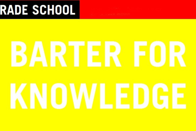 Imaginé sur le principe du troc, la Trade School offre la possibilité d'échanger des services contre des objets. La dimension économique s'efface au détriment de la dimension personnelle. L'enseignant établi une liste de souhaits, soumise à ses futurs élèves qui choisiront ensuite parmi ces demandes, celle qu'ils adopteront pour rétribuer leur professeur. Matériel ou non, ces requêtes sont une façon d'apprendre à connaître l'autre, c'est une première approche qui permet d'identifier le cours ou celui qui va le donner.