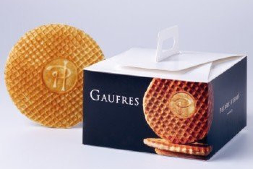 Pierre Hermé ! Des gaufres très fines, avec une pâte couleur dorée. Les deux