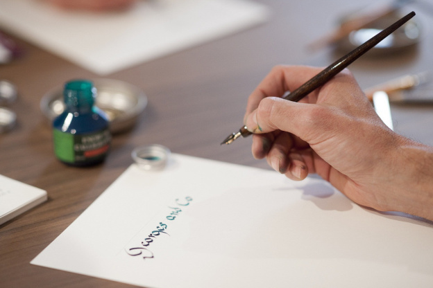 Georges & Co c'est également Georgette, et Georgette, elle écrit à la demande, à la commande. Elle reproduit votre écriture à la bonne taille, à la bonne couleur. Il serait un peu exagéré de la décrire comme une imprimante nouvelle génération. En fait, elle aurait pu être l’inspiration de l’imprimante, le souffle originel. Une main mécanique qui écrit ce que vous avez programmé au moment où vous l’avez programmé, autant de fois que vous l’avez programmé, voilà ce que fait Georgette. Imaginons, vous vous mariez, vous avez une centaine de faire parts à envoyer, la machine à écrire, c’est obsolète, l’ordinateur, c’est impersonnel, il faut absolument qu’ils soient « faits main ». Qu’à cela ne tienne, Georgette en fait son affaire.
