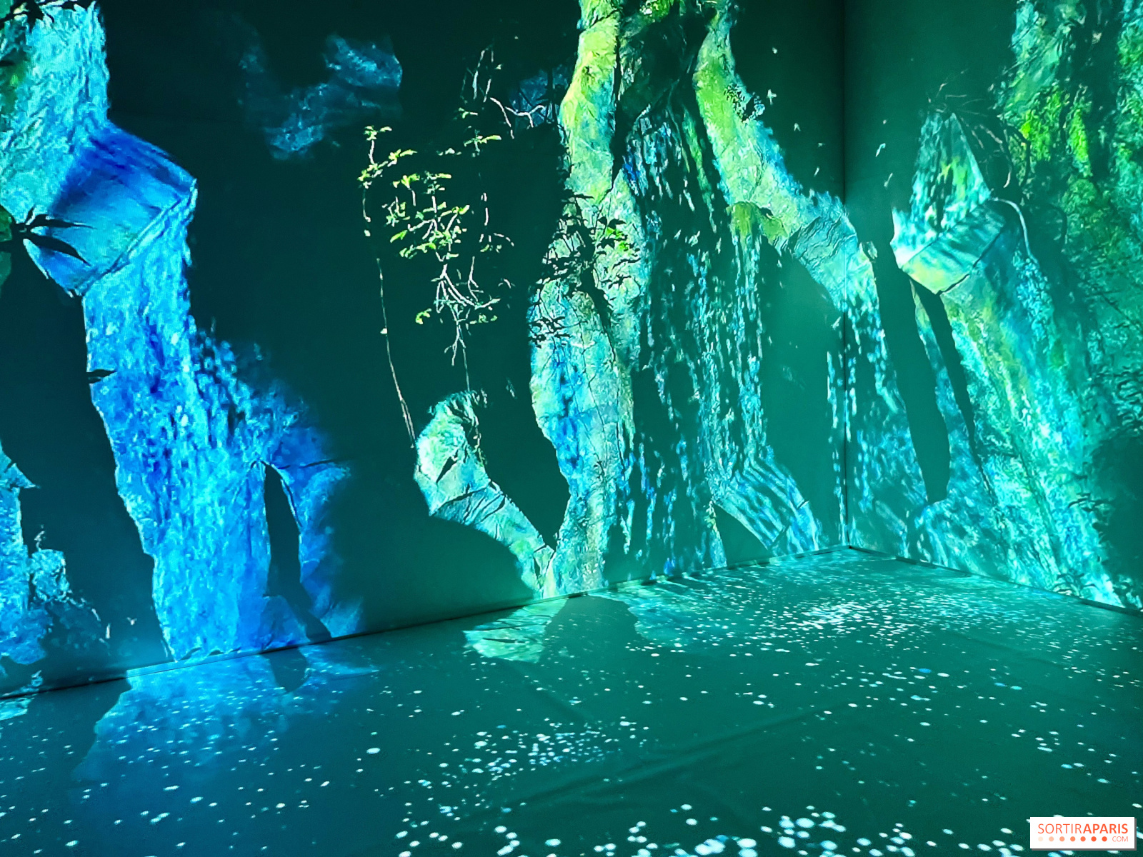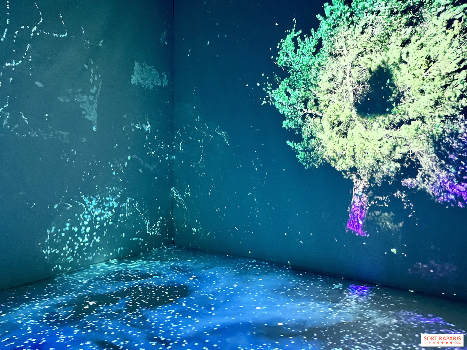 Tereikia nusiauti batus, pasiimti pagalvėlę ir įsitaisyti kelioms akimirkoms (jei norite, galite pasivaikščioti po erdvę), žavėtis skirtingais vienas po kito sekančiais paveikslais: vienur jus užliūliuoja bangų ošimas, kitur užburia šimtų mažų švieselių magija, kurios supa jus tarsi žiburėliai, arba apgaubia krioklio ar lietaus garsai, tarsi būtumėte pakeitę atmosferą.