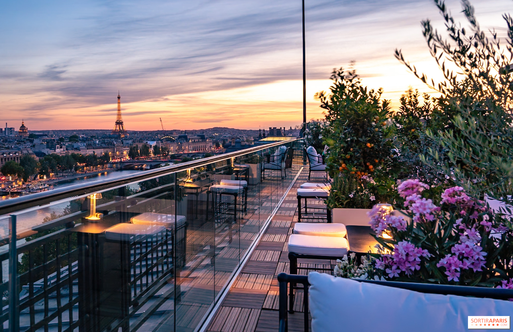 Tai slaptas adresas, kurį verta aplankyti, nes iš jo atsiveria įspūdinga sostinės stogų panorama. Le Céleste, " Cheval Blanc Paris" baras ant stogo, kurį atradome kaip žiemos burbulą, vasarą buvo pertvarkytas į terasą po atviru dangumi, iš kurios atsiveria vaizdas į visą Paryžių vienu žvilgsniu. Nuo Notre-Dame katedros iki Orsė muziejaus, nuo Invalidų rūmų kupolo iki Eifelio bokšto - vaizdas stebuklingas.