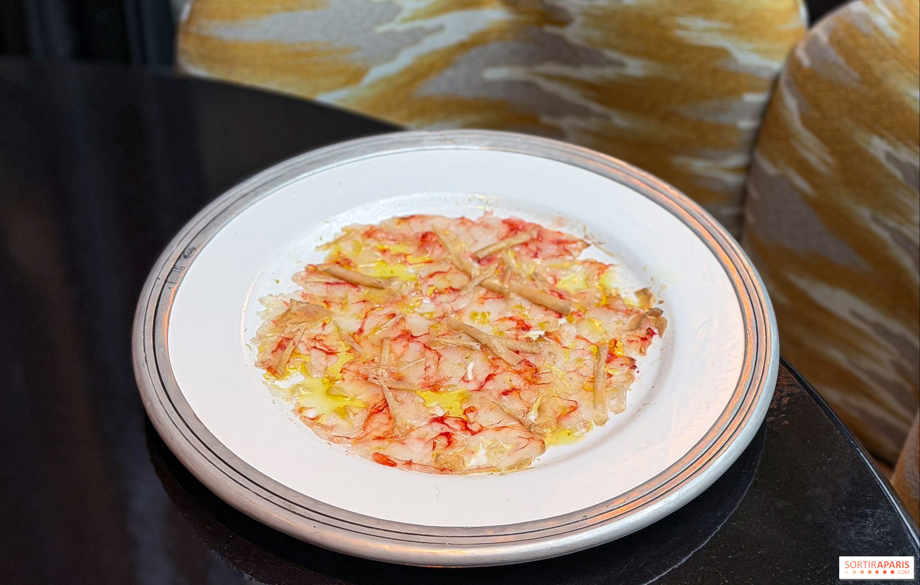 Pradedantys patiekalas – Mazaros raudonųjų krevečių carpaccio su kepenų luobelės žiedlapiais – įpjaustytas gražiai ir subtiliai, nors šiek tiek norėtųsi paprasto rūgštumo akcento, kad suaktyvintų patiekalo apelsiną. Sviestinėmis grybų ir stracciatella užkandžiai išlieka mėgstamiausia klasika – juos lengva dalintis kartu su šviežia focaccia šalia, nors ir su šiek tiek labiau švelniu padažu.