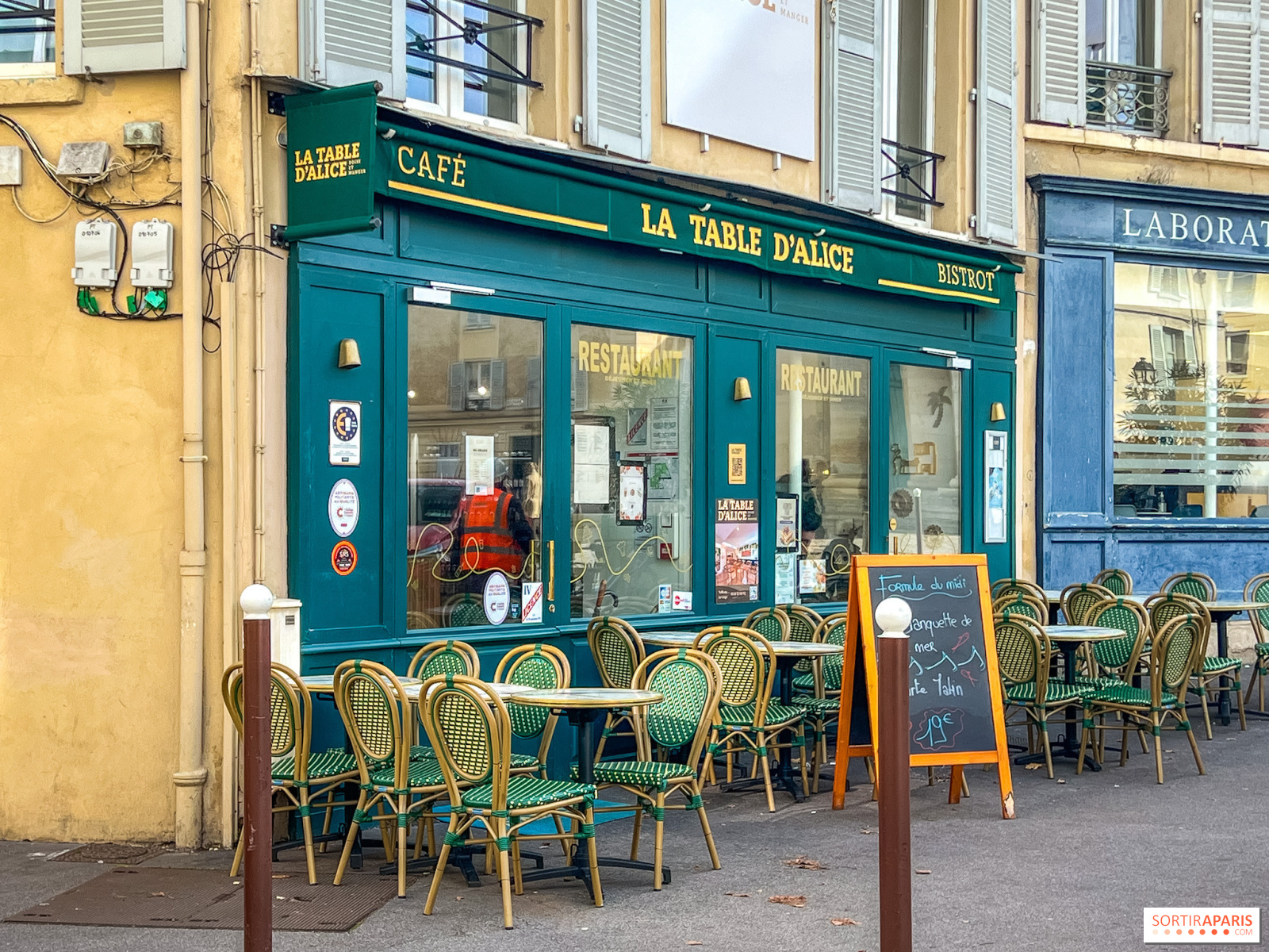 Table d'Alice mums vispirms patīk atmosfēra. Vietas ir gaišas, ar terasi Saint-Symphorien laukumā, kas ir ideāla, lai baudītu skaistas dienas. Šeit var ienākt jebkurā laikā, pat darba dienās, lai pie letes izdzertu kafiju un nobaudītu kādu saldumu. Mājas gatavotie ēdieni ir acīmredzami pievilcīgi, telpa bieži ir pilna, kas liecina, ka šī vieta jau ir atradusi savus cienītājus.
