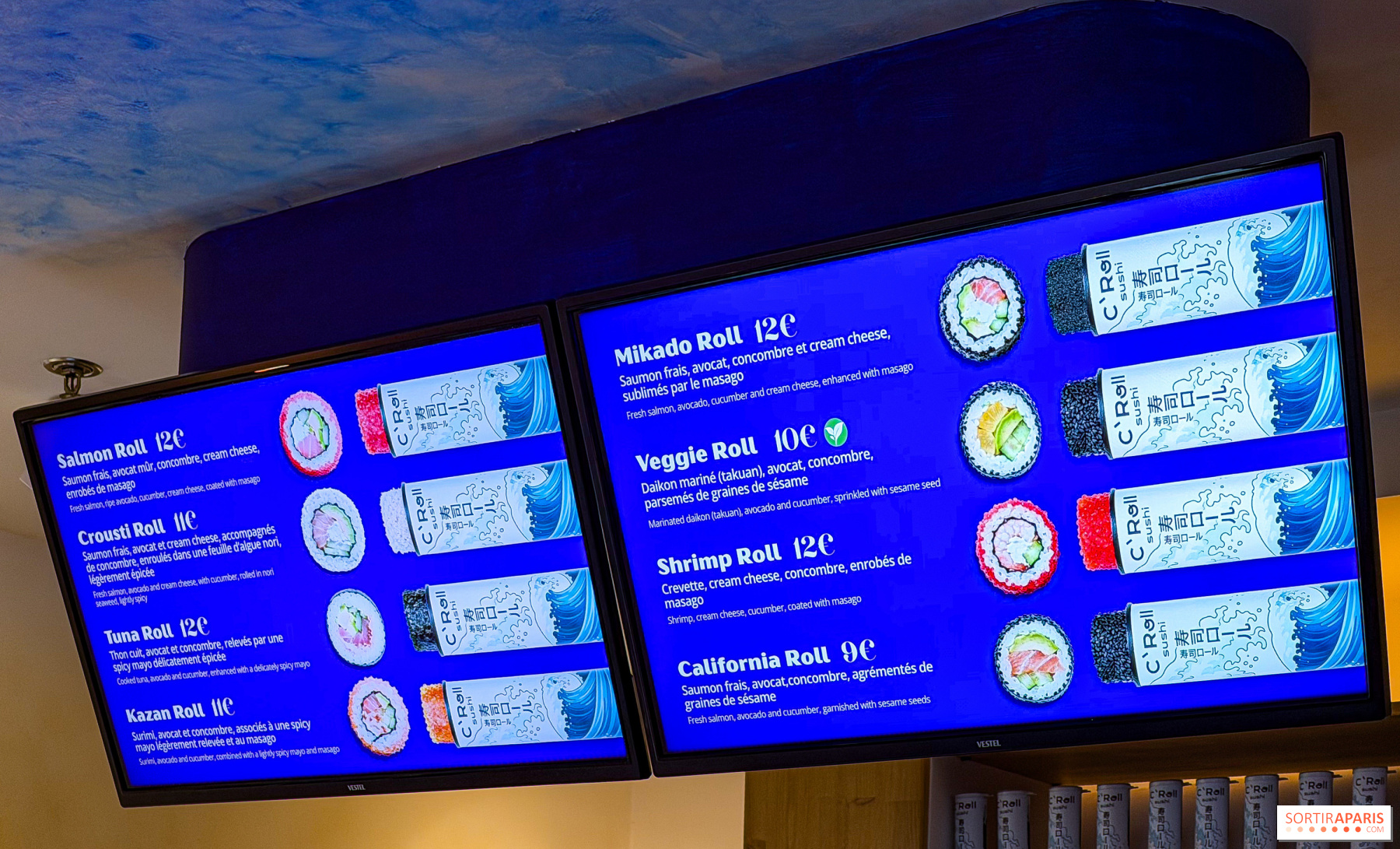 Wat de smaak betreft, zien de smaken er klassiek uit, maar ze werken wel. De acht recepten variëren van de California Roll voor 9 € tot de Tuna of Salmon Roll voor 12 €, inclusief een Veggie-versie. De prijzen liggen dicht bij die van de klassieke lunchmenu’s en zijn exclusief salade van kool, misosoep of gezouten rijst: C'Roll Sushi blijft een zaak met één specialiteit, volledig gericht op sushi in rolletjes. Om de roll te begeleiden, zijn er enkele dranken verkrijgbaar, zoals frisdrank in blik of kleine flesjes plat of bruiswater. Een toetje of bijgerechten worden niet aangeboden.