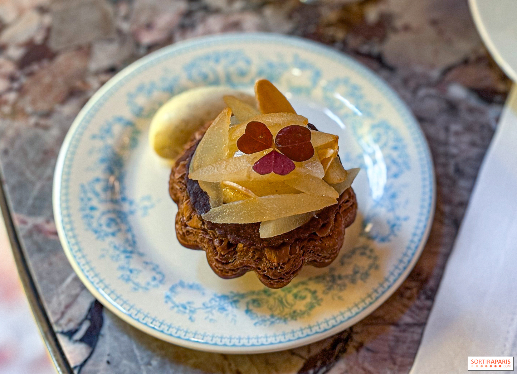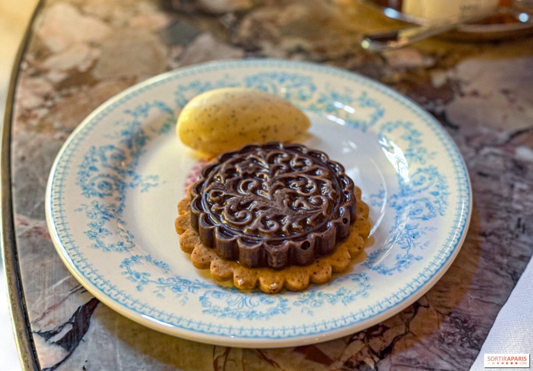 En omdat een tea time zonder koekjes ondenkbaar is, volgen daarna de poire et vanille de Madagascar en de chocolade-karamelkoekjes, twee lekkernijen om van te smullen tussen twee slokjes thee of warme chocolademelk door. Als begeleiding: een broodje met melk en vanilleboter met fleur de sel, en een brioche met bramen en viooltjes.
