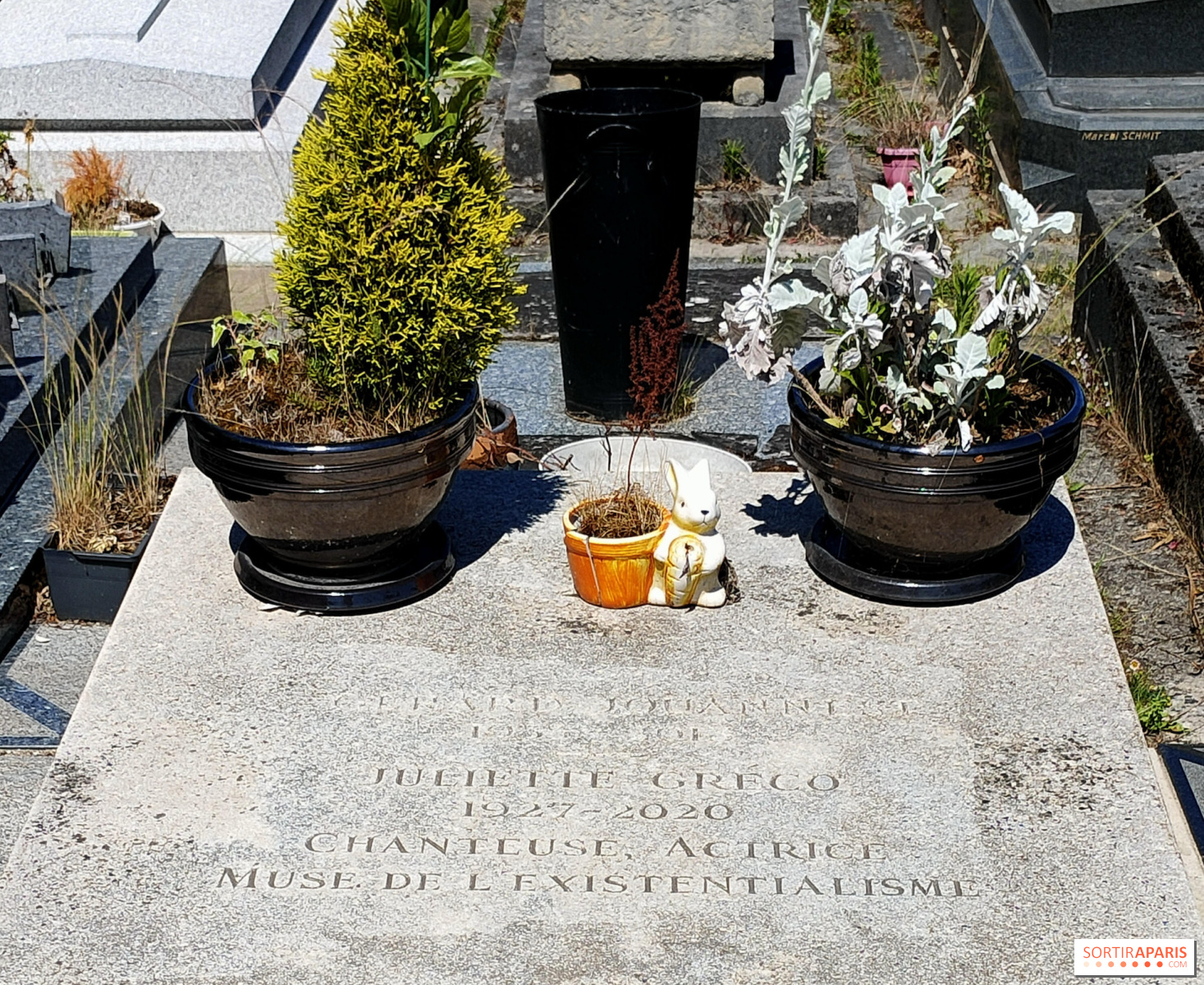 Montparnasse begraafplaats (14ᵉ arr.). Ze ligt begraven in de 9ᵉ afdeling van het Montparnasse kerkhof, samen met haar man Gérard Jouannest. Het sobere en regelmatig met bloemen versierde graf is een discrete maar emotionele plek.