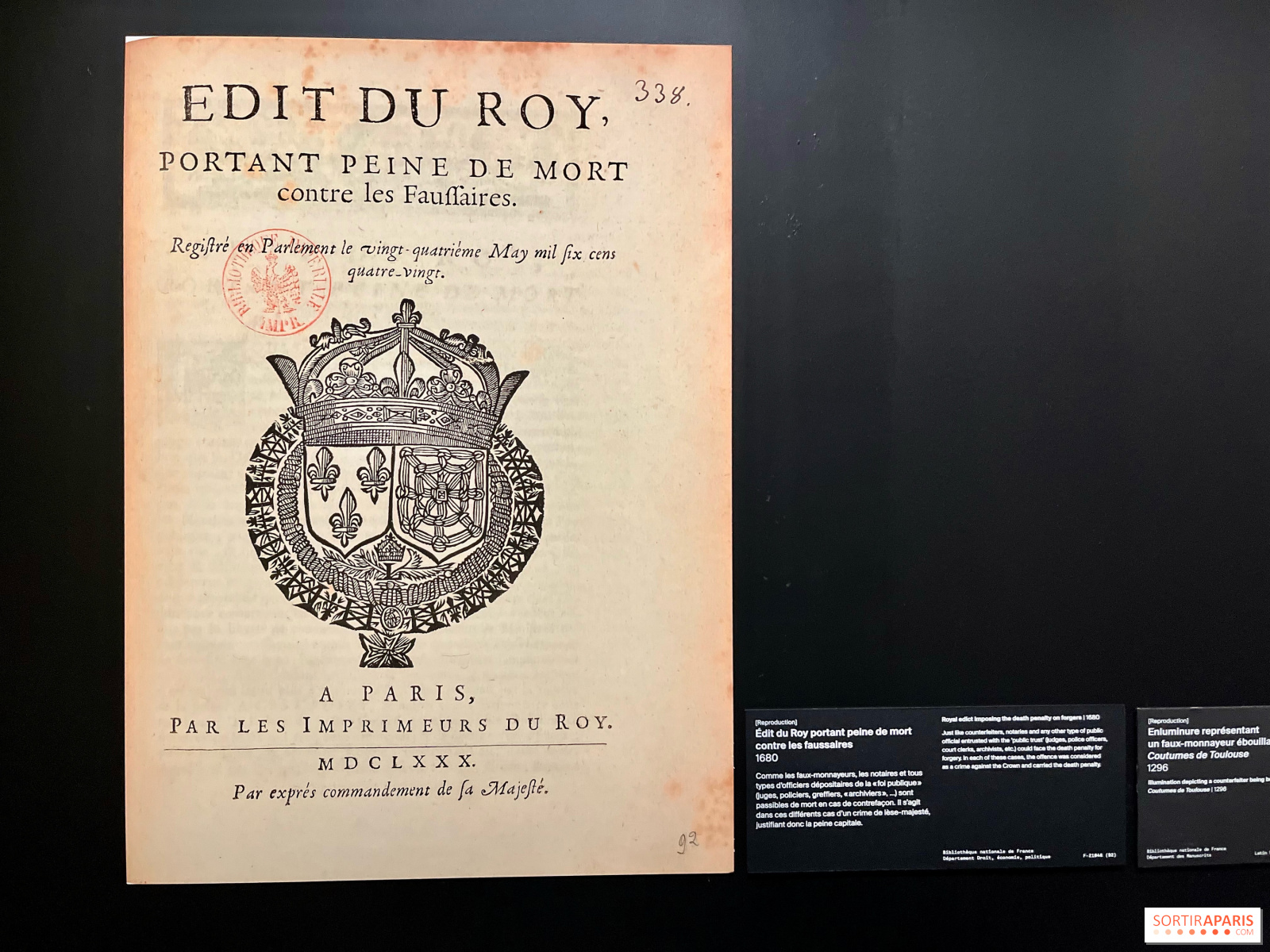 En gang i tiden var det dødsstraff for å være falskner! Men selv Napoleon gjorde det for å lure sine fiender ... Utstillingen er designet for å være morsom, med små innstikk som inviterer besøkende til å observere forskjellene mellom det ekte og det falske, og piktogrammer som forestiller en maskert mann som er knyttet til et heftespill for barn fra 8 år og oppover, slik at de kan bli små etterforskere! Det er også veldig tett, med mye tekst å lese på veggene.