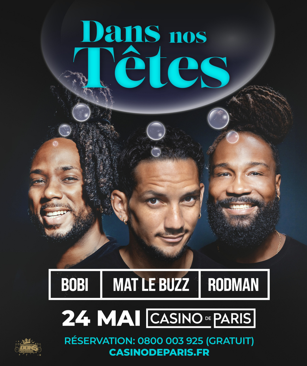 Etter suksessen med turneen deres vil Bobi, Mat le Buzz og Rodman samle energien sin på den legendariske scenen på Casino de Paris for en engangsforestilling den 24. mai 2025. Deres felles show, Dans Nos Têtes, blir en blanding av livlig stand-up, vanvittige improvisasjoner og direkte utveksling med publikum. Et hybrid, interaktivt format som allerede har gitt dem en solid tilhengerskare over hele den fransktalende verden.