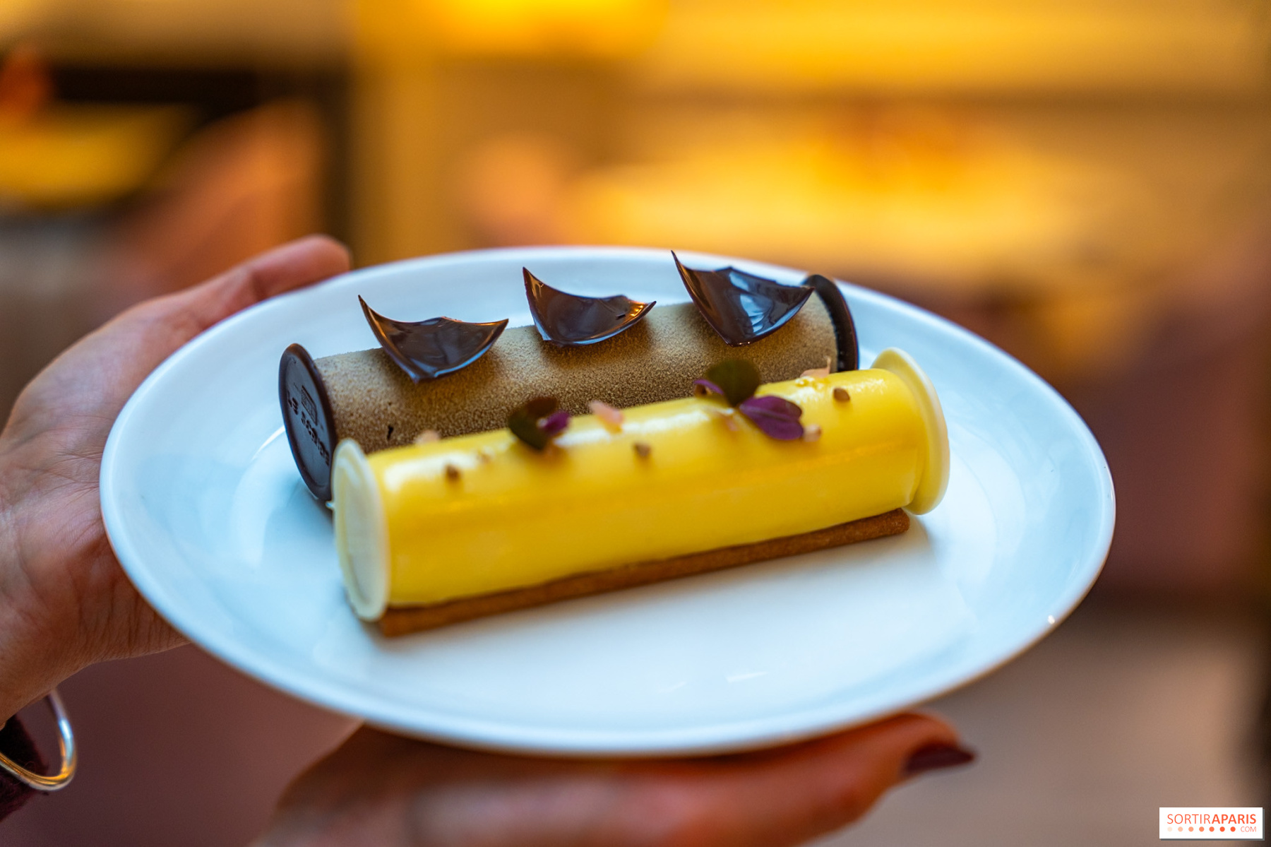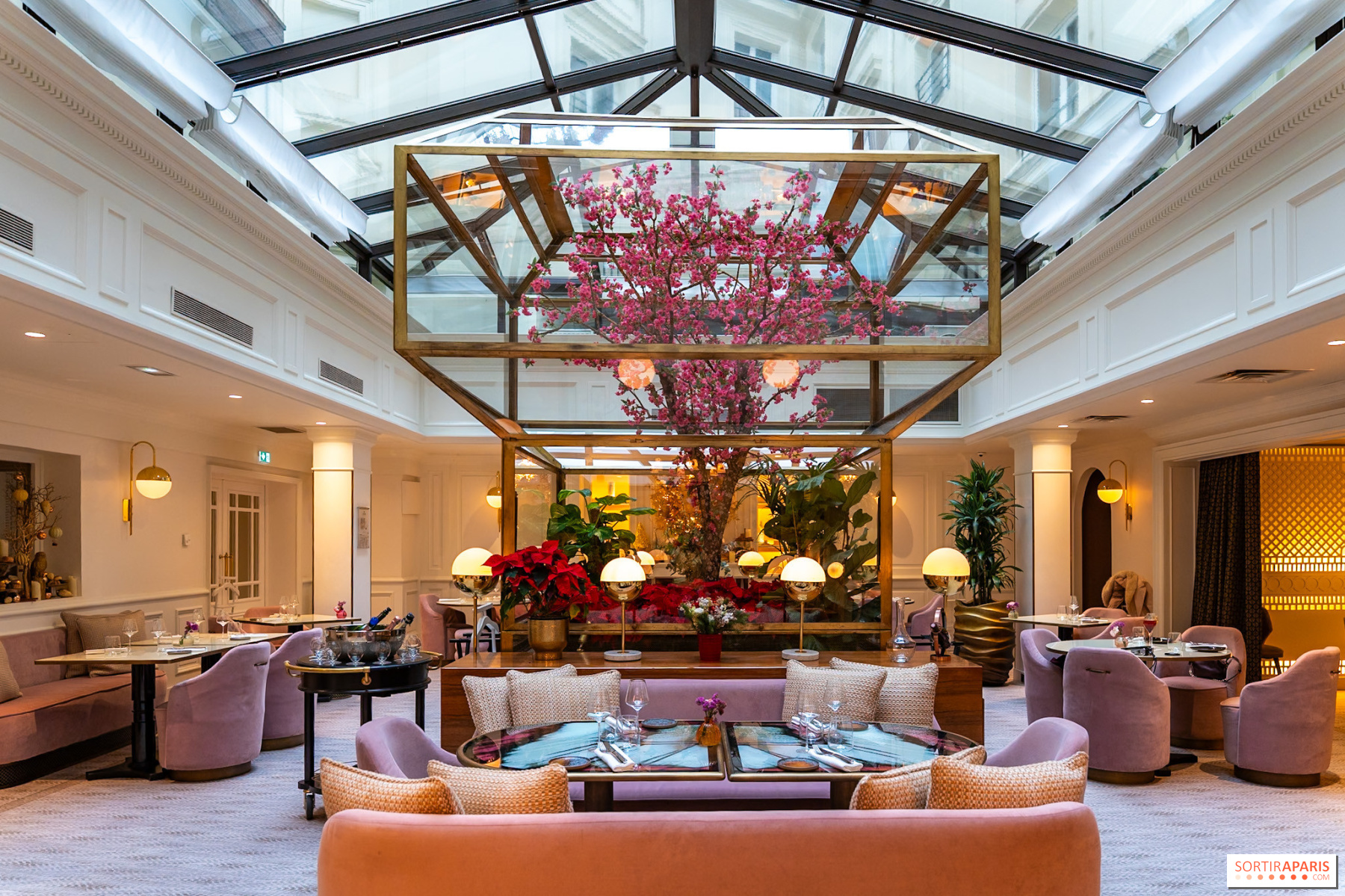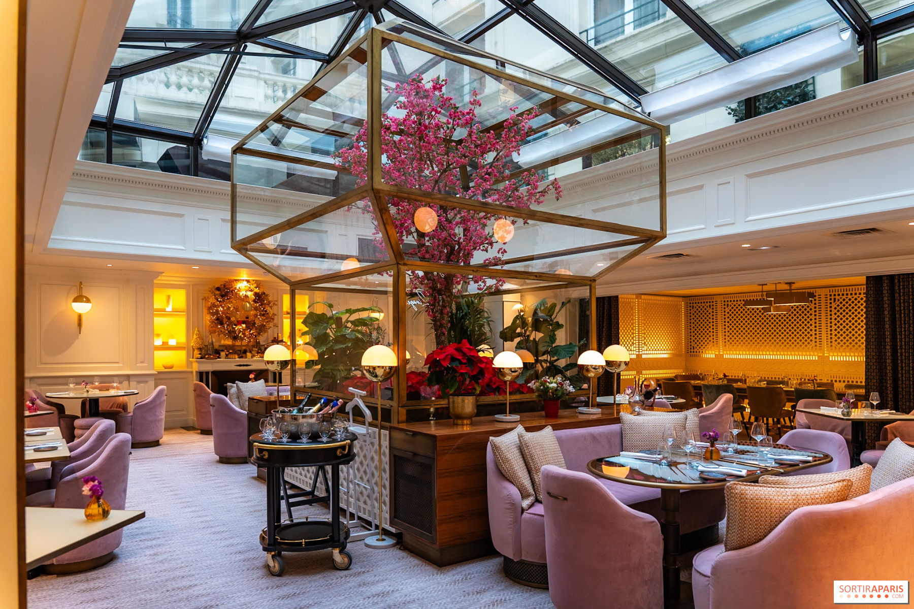 I komfortable lenestoler i rosenrøde nyanser, under glasstaket som bader i naturlig lys, kan du nyte et øyeblikk i tiden, langt fra Paris' kjas og mas. Den rimelige juleteen er bygget opp rundt en symfoni av smaker, som starter med de salte entremettene. Foie gras-briochen smelter delikat i munnen, mens hummerrullen er sprø og laksehjertet tilfører en subtil friskhet.