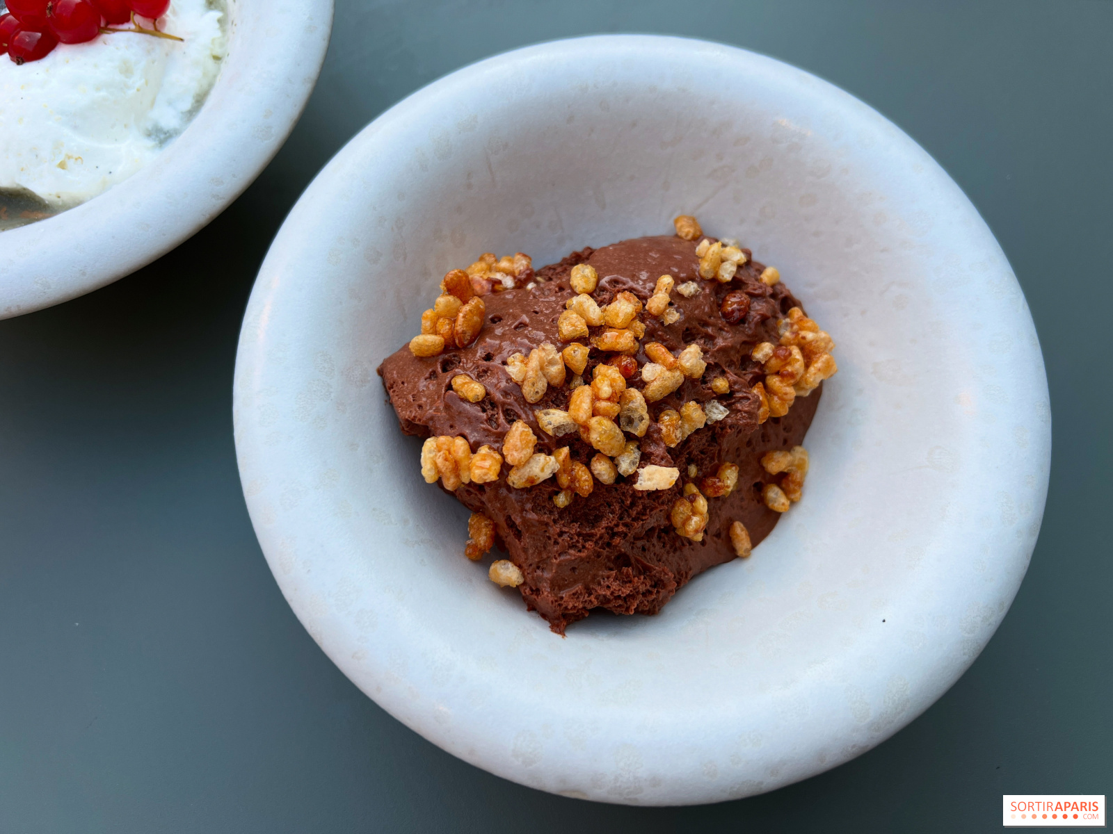 Jeśli chodzi o słodkości, szefowa cukierni Paloma Laguette jest odpowiedzialna za powrót do francuskich klasyków. Są to między innymi mus czekoladowy wzbogacony czerwonym miso i zwieńczony karmelizowanym dmuchanym ryżem (14 €) oraz nage z czerwonych owoców marynowane w shiso i soku z limonki (16 €).