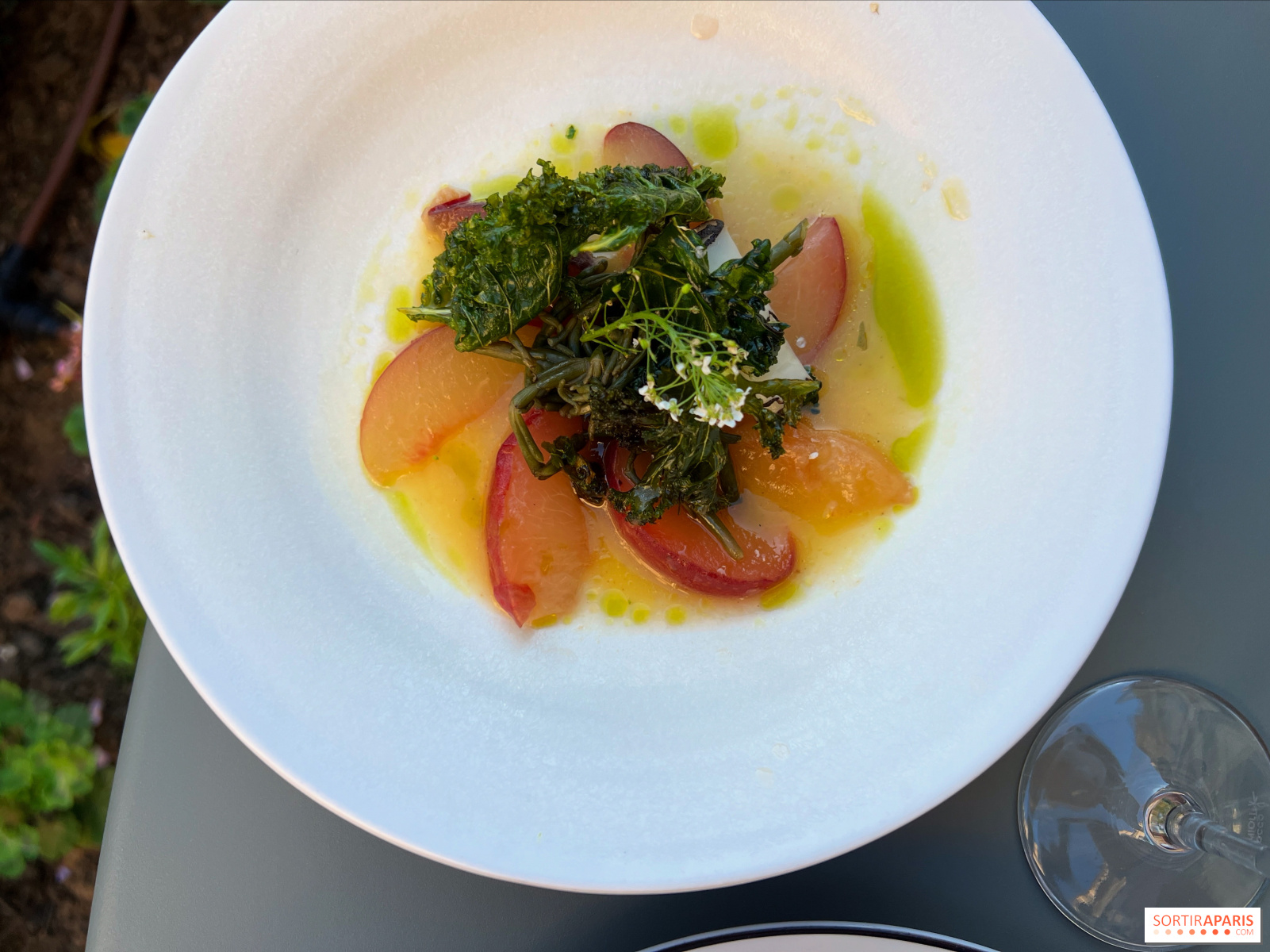 Szef kuchni Issac Romero jest odpowiedzialny za pikantną stronę rzeczy, łącząc francuskie klasyki ze smakami z całego świata, zwłaszcza z Japonii. Warzywa podawane są w postacikarmelizowanego bakłażana z brązowym piwem i miso (12 €) lub sałatki z białych brzoskwiń marynowanych w liściach laurowych, pikli z czarnej rzodkwi i chipsów z jarmużu (14 €).