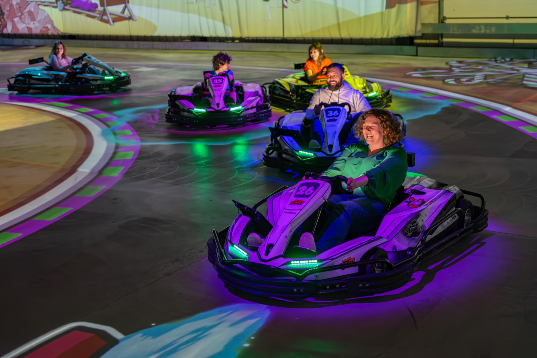 O conceito de BattleKart Paris Nord baseia-se numa ideia simples: aqui, não se assiste a um jogo, você o percorre. A bordo de um kart elétrico, você pilota numa pista onde, em tempo real, são projetados cenários, bônus, obstáculos e diversos universos de jogo. A experiência distingue-se pela fusão entre atividade física, destreza ao volante e a mecânica de um jogo de videogame imersivo.