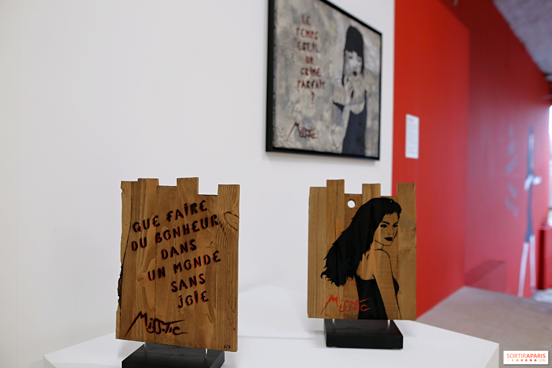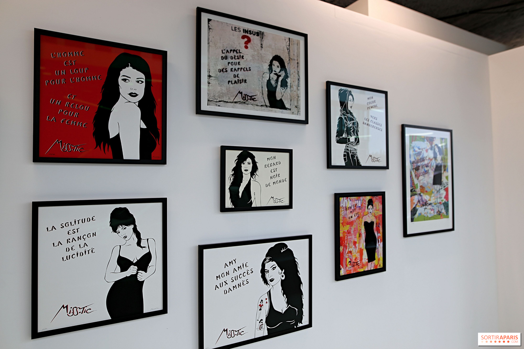 A poesia está presente em toda a exposição, que se divide em vários temas: filosofia, Paris, erotismo e política. Atualmente, a assinatura Miss.Tic é conhecida e reconhecida por todos. De facto, no passado mês de fevereiro, o Centro Pompidou adquiriu dezassete das suas obras.