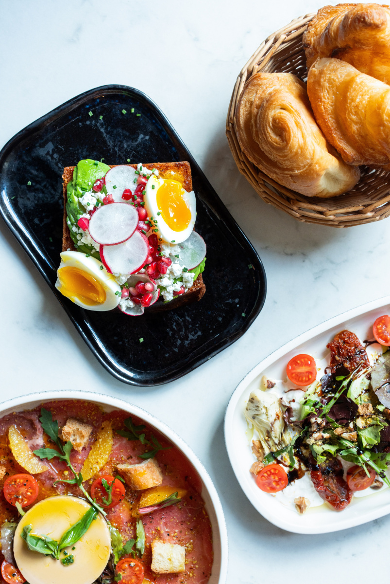 Na ementa: tosta de abacate picante com feta, romã e pickles de cebola vermelha; stracciatella cremosa com tomates secos ao sol, corações de alcachofra, bresaola e lascas de noz; e carpaccio de carne de vaca e foie gras, polvilhado com pistácio em pó.