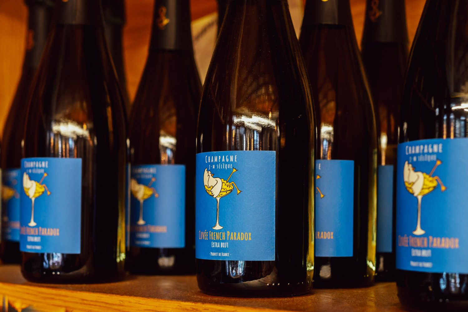 A lista de champanhe inclui os grandes nomes, mas não só:"Fizemos uma escolha indulgente. Não queríamos trabalhar apenas com os grandes nomes, mas sim com pequenas casas de qualidade que trabalham biodinamicamente, respeitam as vinhas e produzem champanhe incrível. Fomos visitar os produtores e provámos uma centena de champanhes para elaborar o nosso menu". Poderá provar a cuvée especial Canard & Champagne de Jean-Marc Le Selèque.