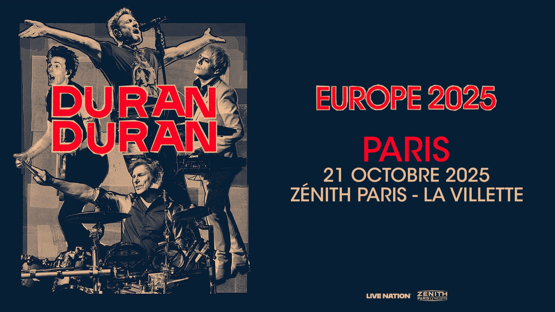 În această toamnă, Duran Duran va porni din nou la drum, după o serie de 14 concerte europene pe parcursul verii. Pe lângă Manchester și Nottingham, formația originală formată din Simon Le Bon, Nick Rhodes, John Taylor și Roger Taylor se va opri și la Paris! Pentru a (re)descoperi live hiturile lor "The Reflex ", "Ordinary world " și "A view to a kill ", mergeți la Zénith de La Villette pe 21 octombrie 2025!