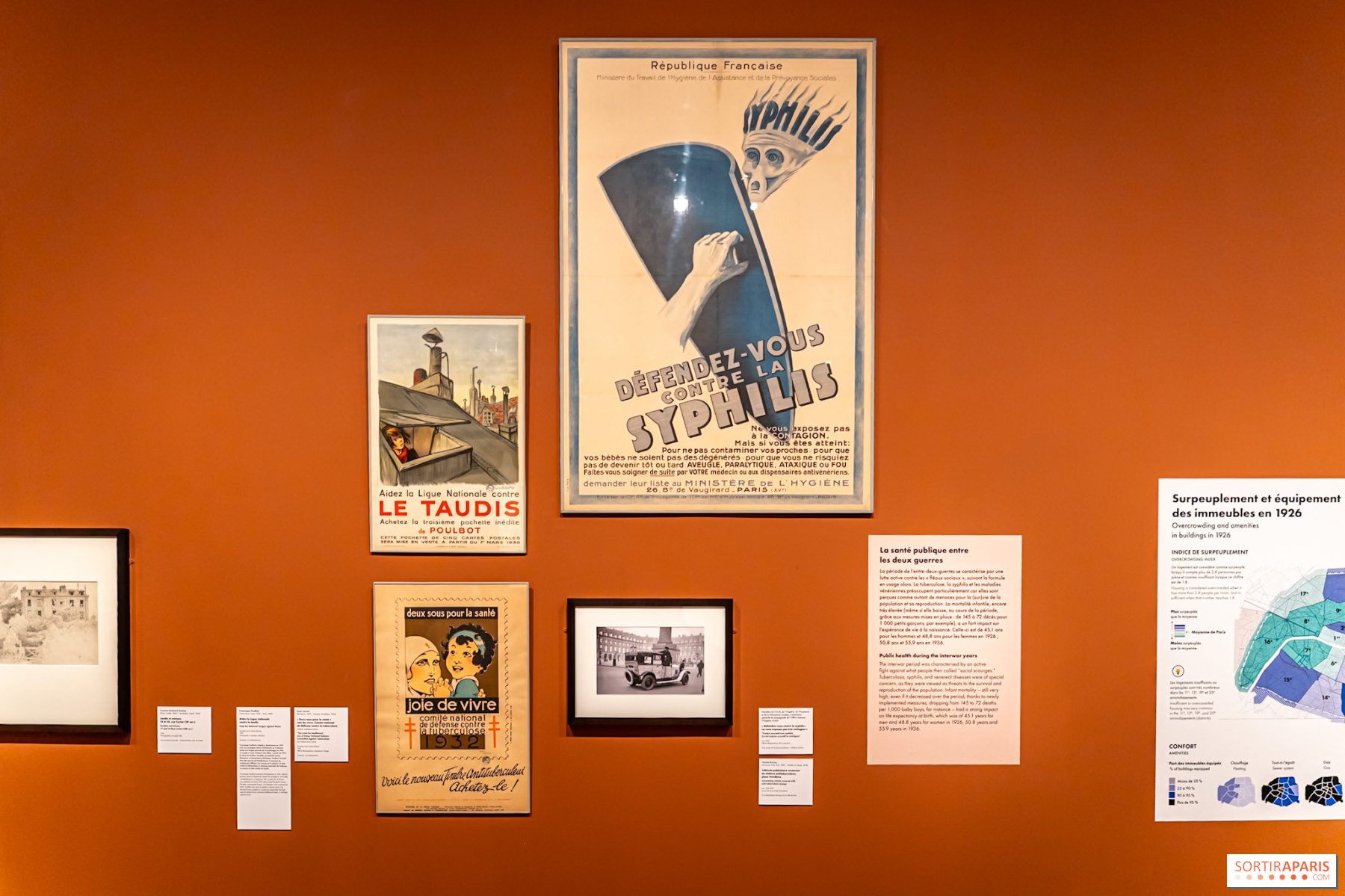Prin intermediul fotografiilor de epocă, al cărților poștale, al obiectelor cotidiene și al graficii computerizate, expoziția realizează un portret în patru etape: locurile de naștere și naționalitățile, ocupațiile, situațiile familiale și distribuția în fiecare cartier și clădire. Expoziția prezintă modul în care era structurată viața pariziană, de la cartierele de lux din vest la suburbiile muncitorești din est, de la atelierele meșteșugărești din Marais la cafenele-restaurante precum cea imortalizată pe o carte poștală, Au Réveil Matin, situată pe avenue Jean-Jaurès în arondismentul 19. Această imagine a unei cafenele populare din anii 1930 este deosebit de fascinantă.