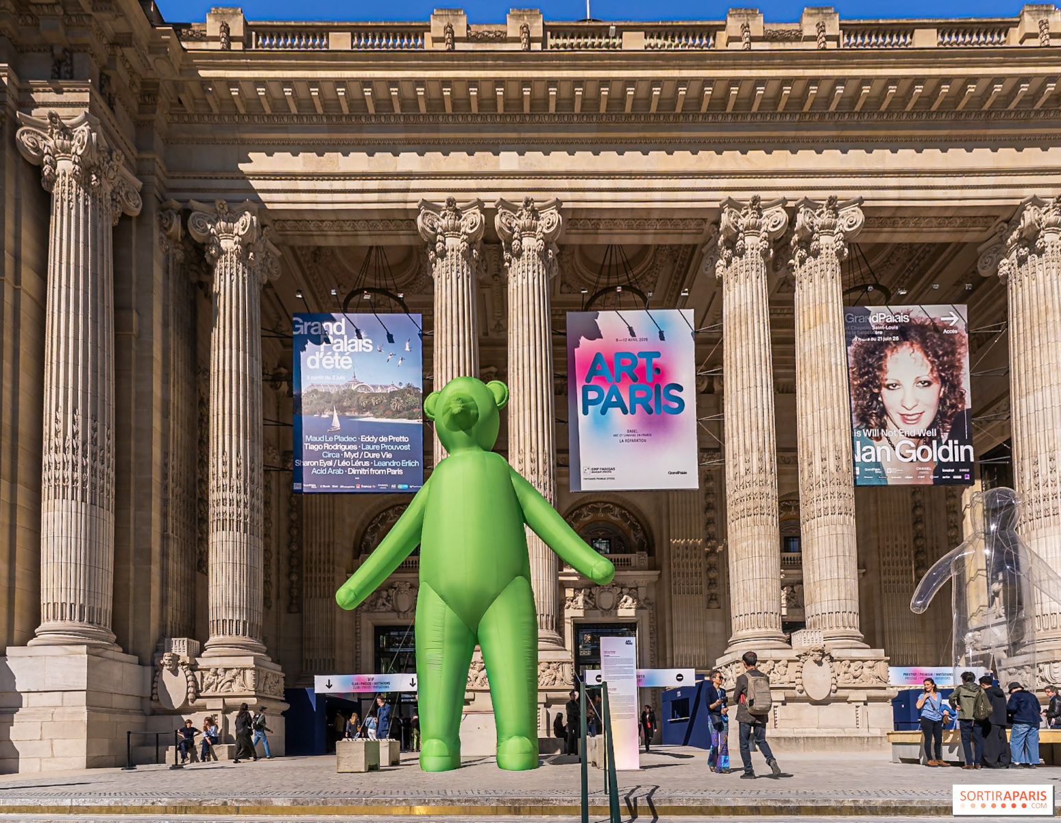 Recomandăm acest dublu eveniment oricui este interesat de arta angajată, de ecologie în creația contemporană sau pur și simplu celor care vor să înțeleagă de ce un urs uriaș verde stă în fața unuia dintre cele mai frumoase monumente din Paris. Art Paris reocupe Neful Grand Palais, la adresa 7 avenue Winston Churchill (Paris 8e), între 9 și 12 aprilie 2026, cu program de la ora 12:00 până la ora 20:00, joi până sâmbătă, și până la 19:00 duminică. Intrarea costă 30 € (15 € pentru studenți) joi și vineri, iar 35 € (20 € pentru studenți) în weekend, cu acces gratuit pentru cei sub 10 ani. Tarife reduse sunt disponibile prin Pass GrandPalais și pentru membrii Bourse de Commerce - Pinault Collection. Ursul din fața Grand Palais poate fi văzut gratuit de curioșii care pur și simplu vor să-l privească.