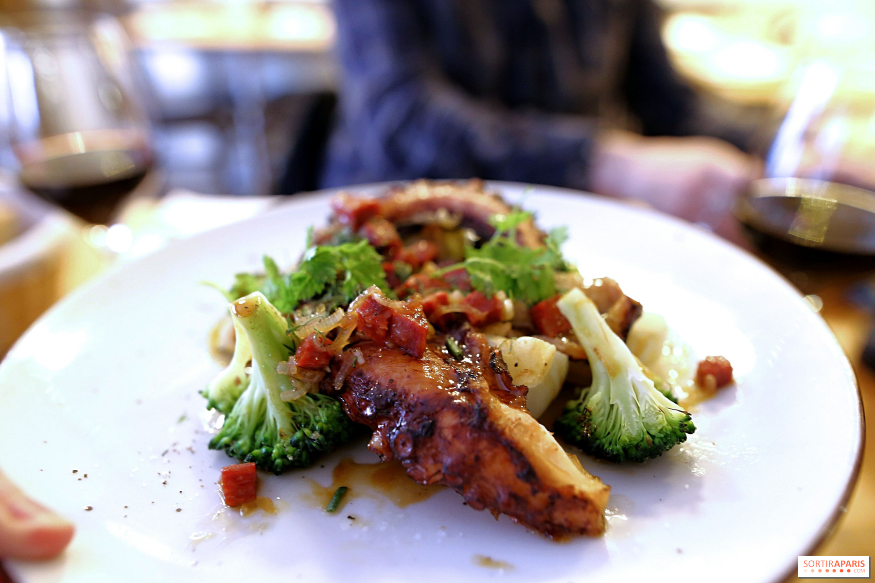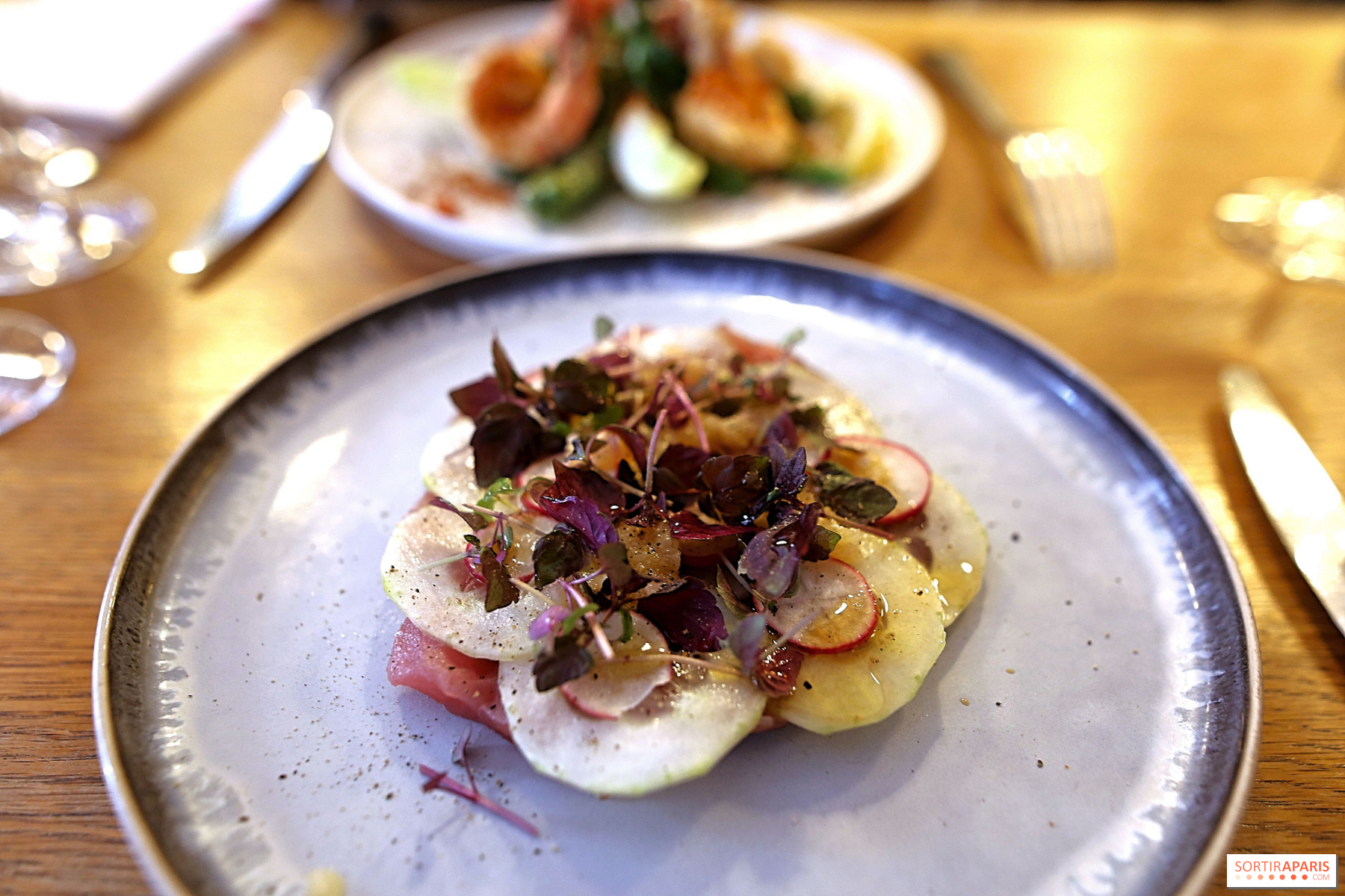 În ceea ce privește meniul, din nou am fost cuceriți de felurile de mâncare, care se schimbă săptămânal în meniul de prânz și sezonier în meniul de seară. Deci, ce este în meniu? Bucătărie bistronomică, cu accent pe produsele de pe piață și inspirație japoneză. În bucătărie, bucătarul japonez Shunsuke Takano este la conducere. Shunsuke Takano este departe de a fi un novice, după ce a lucrat la ERH, un restaurant cu stele Michelin, și la Sola, un restaurant cu stele Michelin din arondismentul 5. Rezultatul? Meniul este apetisant, la fel și preparatele, unde sosurile joacă un rol esențial, iar produsele sunt de cea mai bună calitate (carne de la La Poularde Saint-Martory și Seguin Gastronomie, brânzeturi de la Fromagerie Delon...).