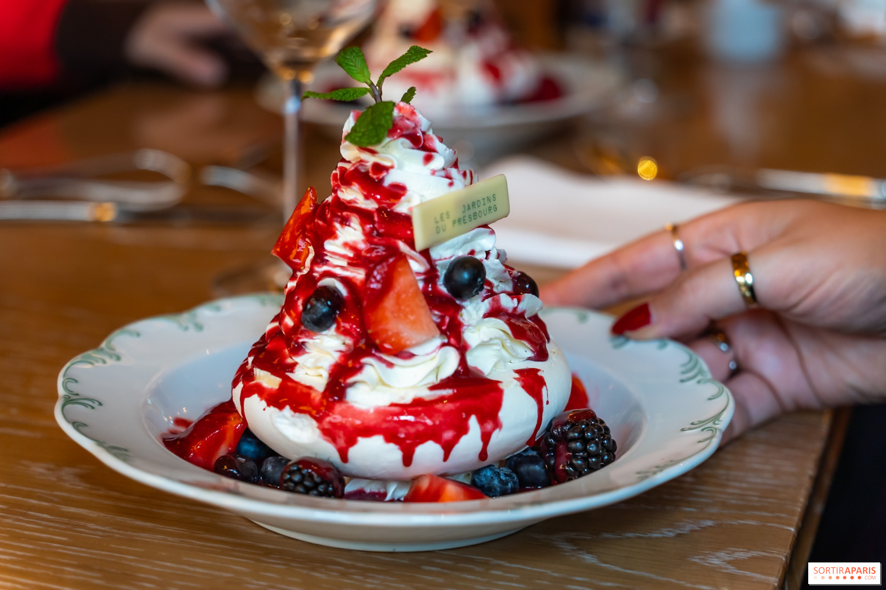 Pentru a încheia masa în cel mai frumos mod, am ales delicioasa tarte tatin caramelizată, precum și careva pavlova cu fructe roșii (22€), delicată și perfect echilibrată între ușor și decadent. Meniul de deserturi include și alte clasici reinterpretati, precum crème brûlée (16€), profiteroles cu ciocolată (20€) sau deliciul casei: pâine prăjită cu fructe (13€). Pentru iubitorii de brânzeturi, opțiunea ideală e Sainte-Maure-de-Touraine cu un mix de salată verde (12€), iar cei mai pofticioși se pot răsfăța cu cafeaua cu dulcețuri servită la prânz.