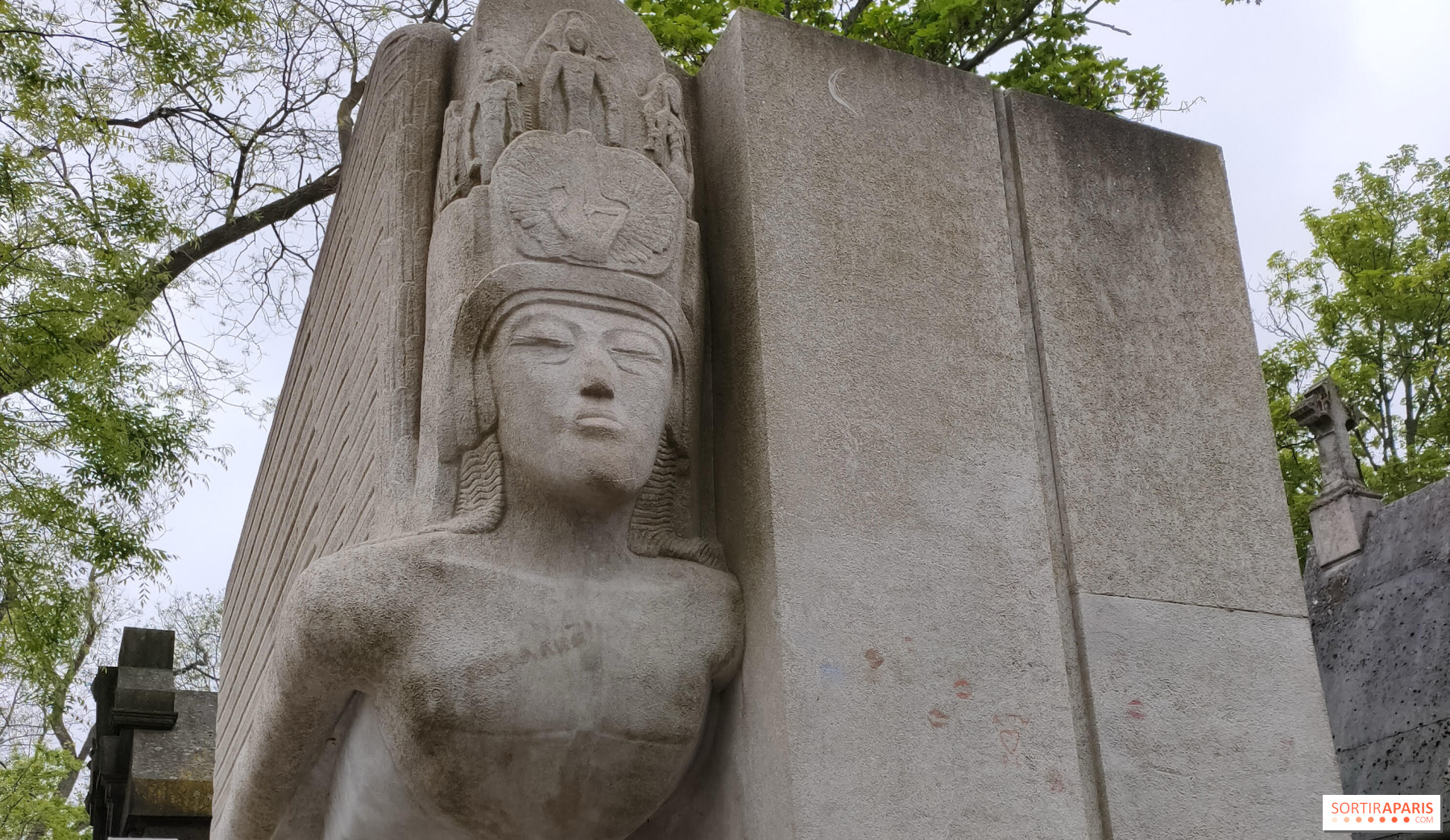 Последняя остановка в этом паломничестве- кладбище Пер-Лашез, последнее место упокоения Оскара Уайльда. Первоначально он был похоронен на кладбище Багне, но в 1912 году его останки были перенесены на Пэр-Лашез, после того как его друг и бывший любовник Роберт Росс приобрел там участок. Погребальный памятник, изображающий крылатого сфинкса, - работа Якоба Эпштейна. Гениталии этого ангела-демона, считавшиеся скандальными, поскольку были хорошо видны, скульптор позже прикрыл бронзовым виноградным листом.