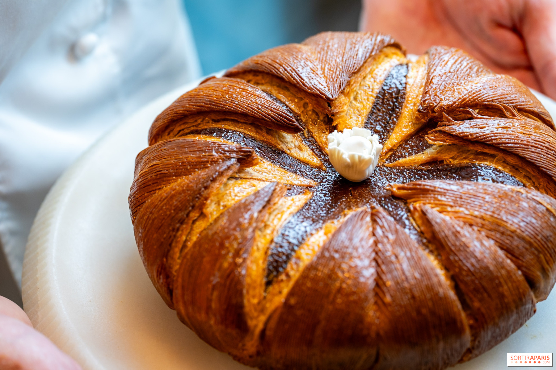 Нам посчастливилось первыми попробовать новое творение George V, и, честно говоря, мы в восторге. Гийом Каброль и его команда в этом году снова удивили нас традиционным пирогом с великолепным карамельным оттенком. Как только его видишь, сразу влюбляешься: внешний вид вдохновлен цветком казетты, укрытым в листе. Чтобы воспроизвести эти изящные изгибы, шеф-повар придумал слоеное тесто с легким какаовым привкусом, частично смешанное с карамелизованным тестом для круассанов. Эта игра текстур и цветов — настоящее удовольствие для глаз еще до того, как вы начнете дегустацию.