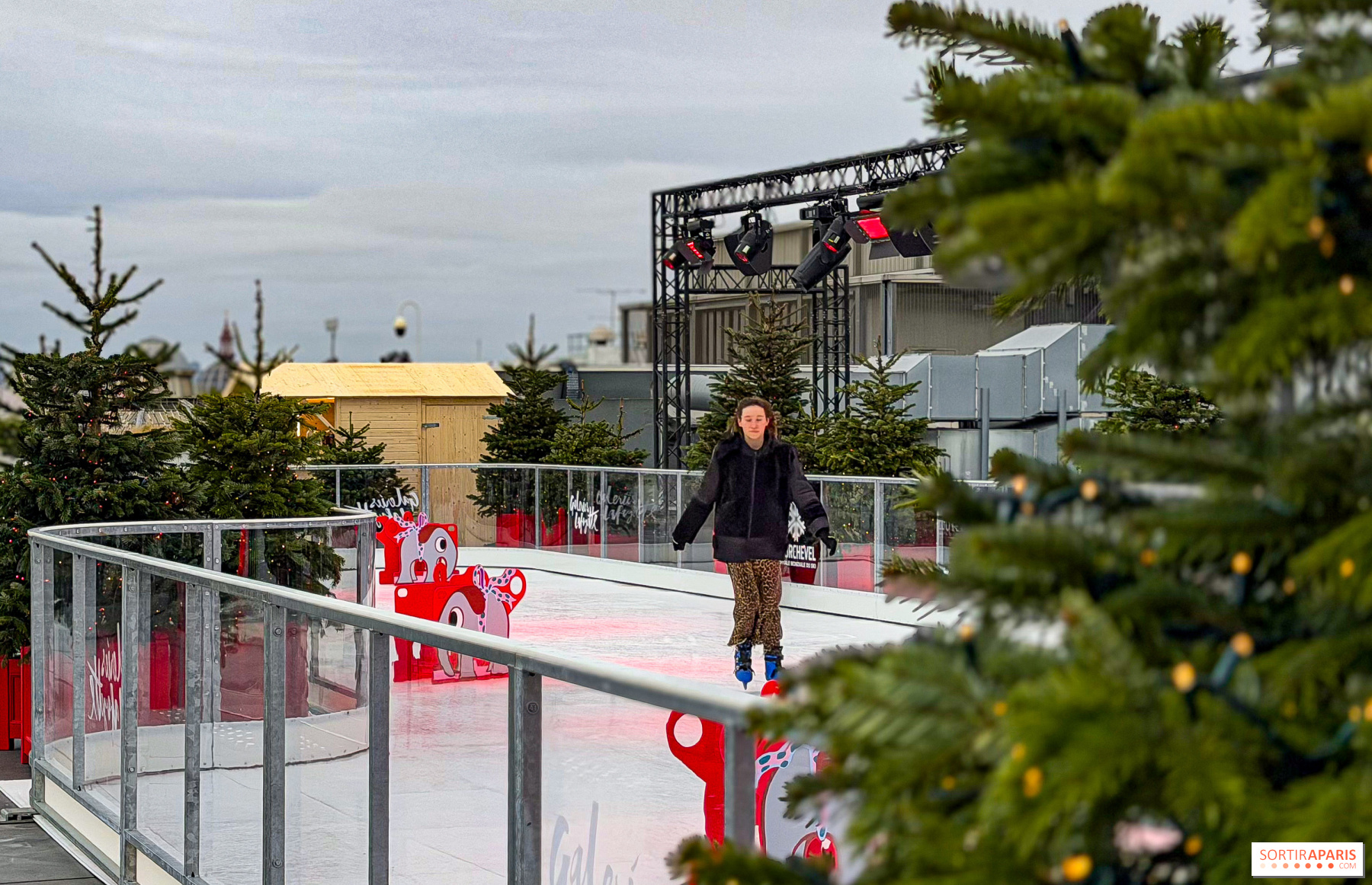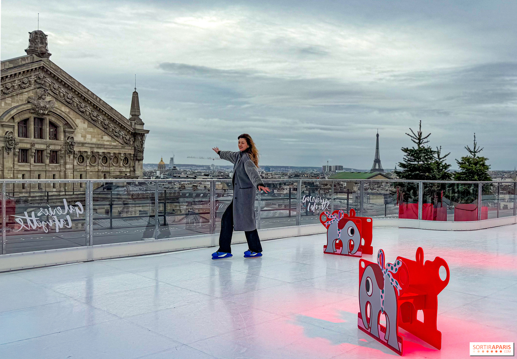 И пока мы мчимся на крышу, внизу универмаг раскрывает свою тему года: «Самый красивый подарок». Между оживленными витринами, декорациями и монументальной елкой, к Рождеству 2025 года Galeries Lafayetteзаставляет нас кружиться... и кататься на коньках!