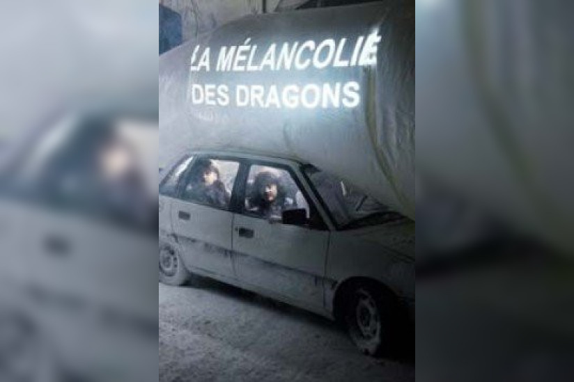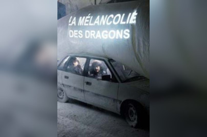 Cheveux sur les épaules et T-shirts noirs, en panne dans la neige au milieu de nulle part, ils écoutent du hard rock à plein volume dans leur voiture. Comment sont-ils arrivés là, on l’ignore.