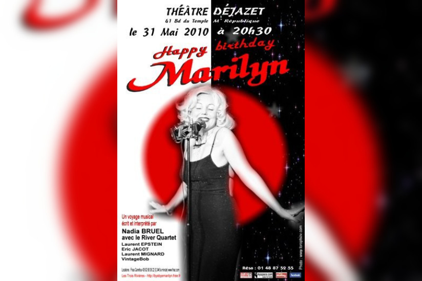 La nuit de son anniversaire, Marilyn nous entraîne dans les secrets de sa vie. Marilyn ou l'envers d'Hollywood. Zoom sur la star et sur Norma Jean l'orpheline. De Cole Porter à Georges Gerschwin, les étoiles du jazz illuminent le récit de cette vie légendaire. Un voyage musical, écrit et interprété par Nadia Bruel avec le River Quartet.