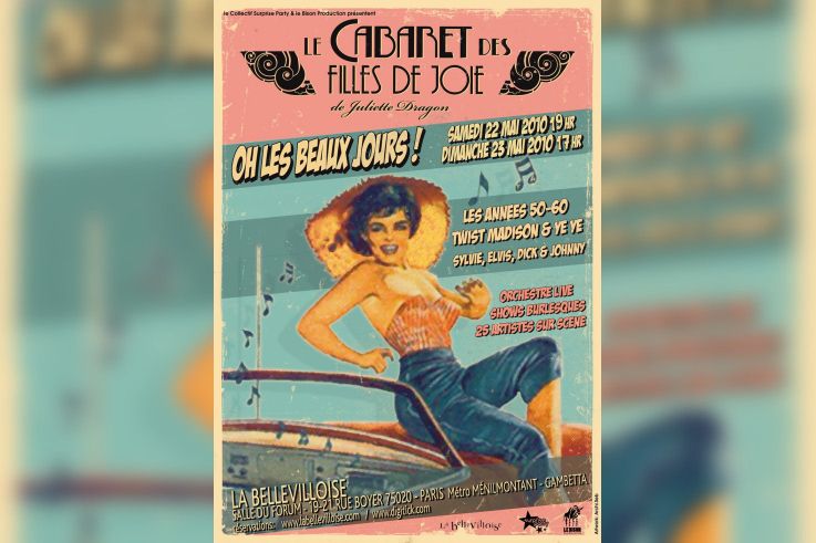 LES 2 SOIRS, sur scène 25 artistes, un orchestre live, des shows burlesques, hommage aux films et séries cultes dont l'intrigue se passe à cette époque: Hair Spray, Happy days, Fonzy, Cry Baby,...