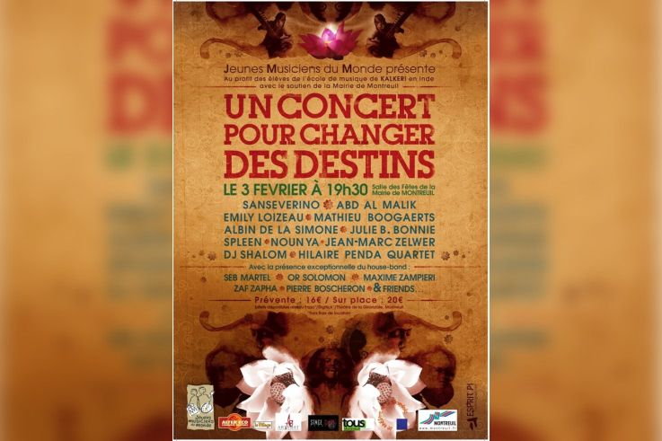 C'est avec grand plaisir que l'association Jeunes musiciens du monde vous convie à la première édition d'un Concert pour Changer des Destins qui se tiendra le mardi 3 février 2009 à la Salle des Fêtes de la Mairie de Montreuil.